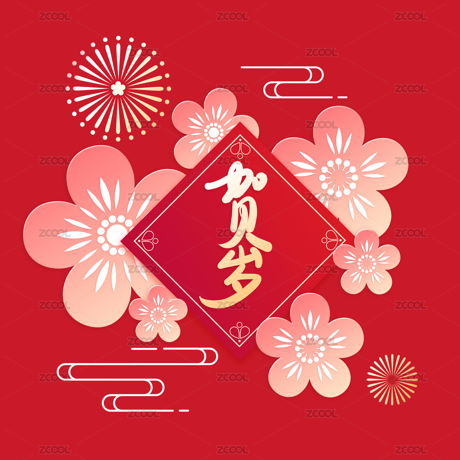 新春快乐,中国传统新春佳节,春节矢量背景图