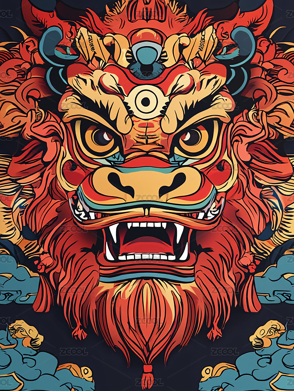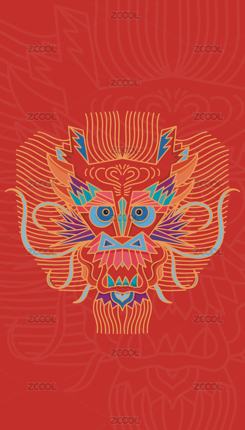 3d立体风格中国年国潮醒狮龙头壁纸插画