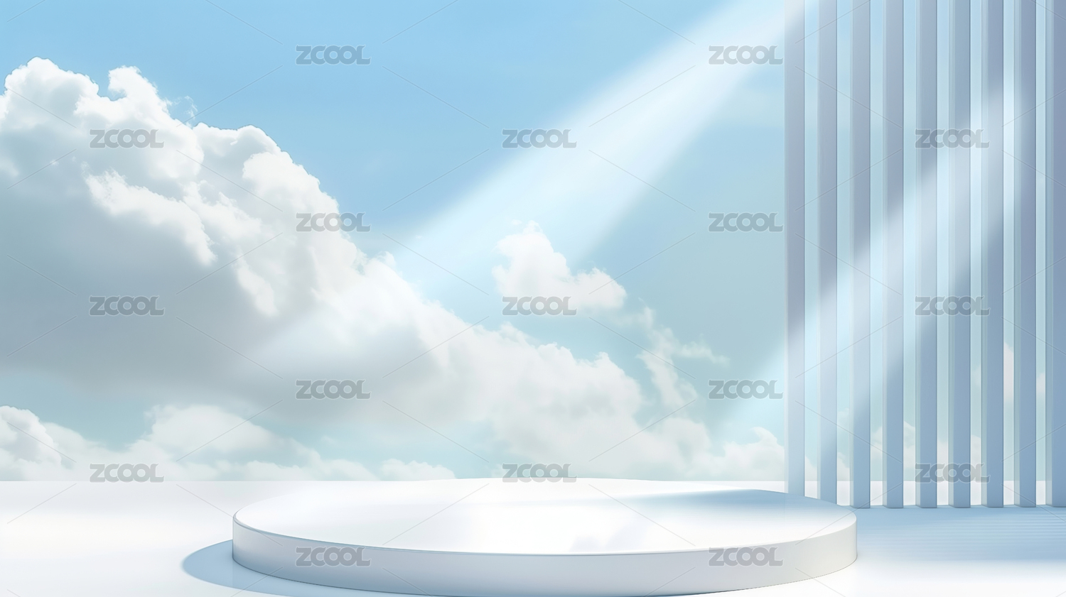 产品展台,蓝色,天空,圆形,清新,云,白云,现代,背景,简单