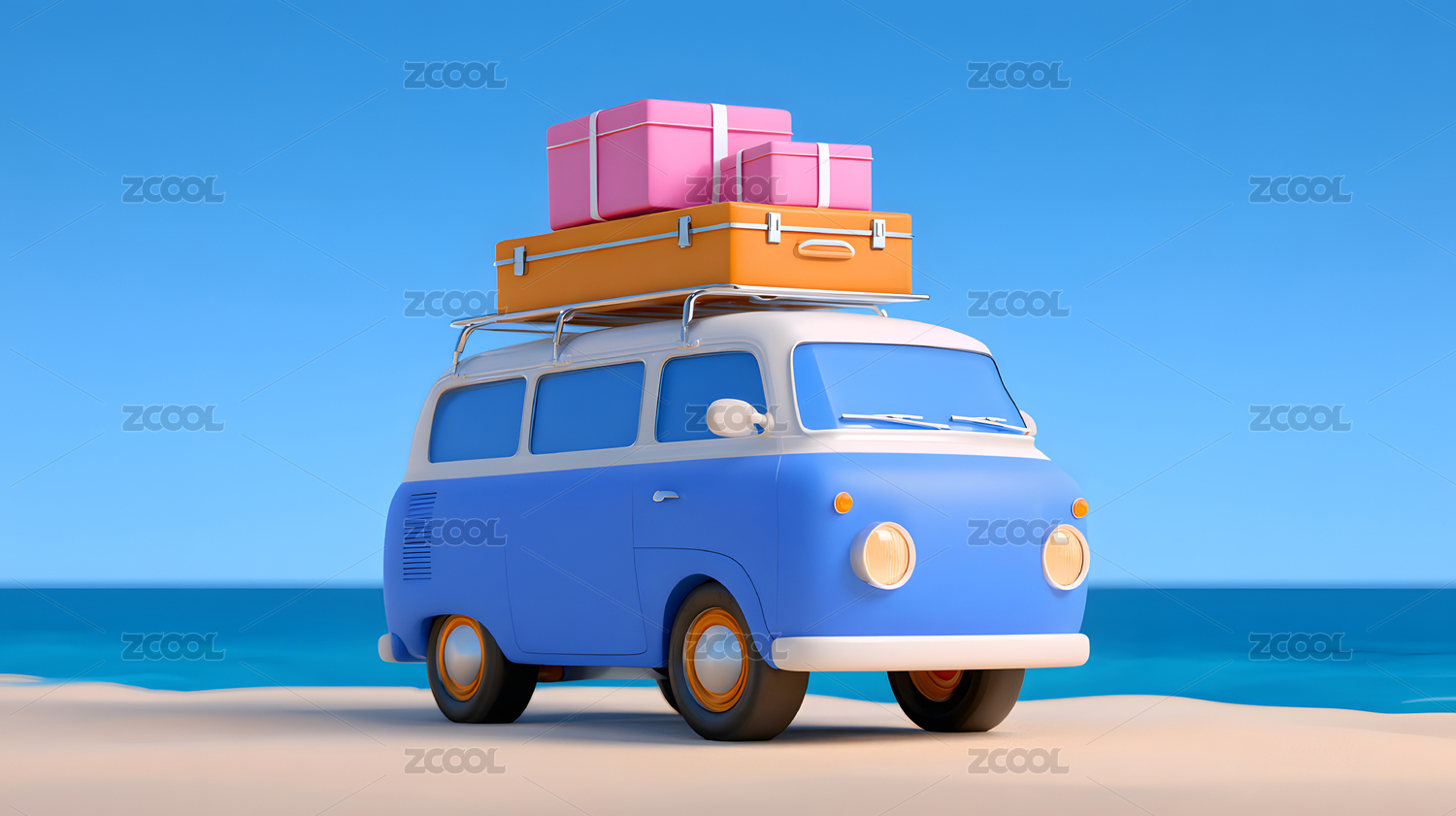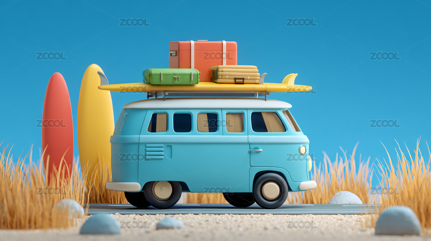 面包车,旅游,巴士,交通,三维图形,夏天,旅行,露营,行李,假日