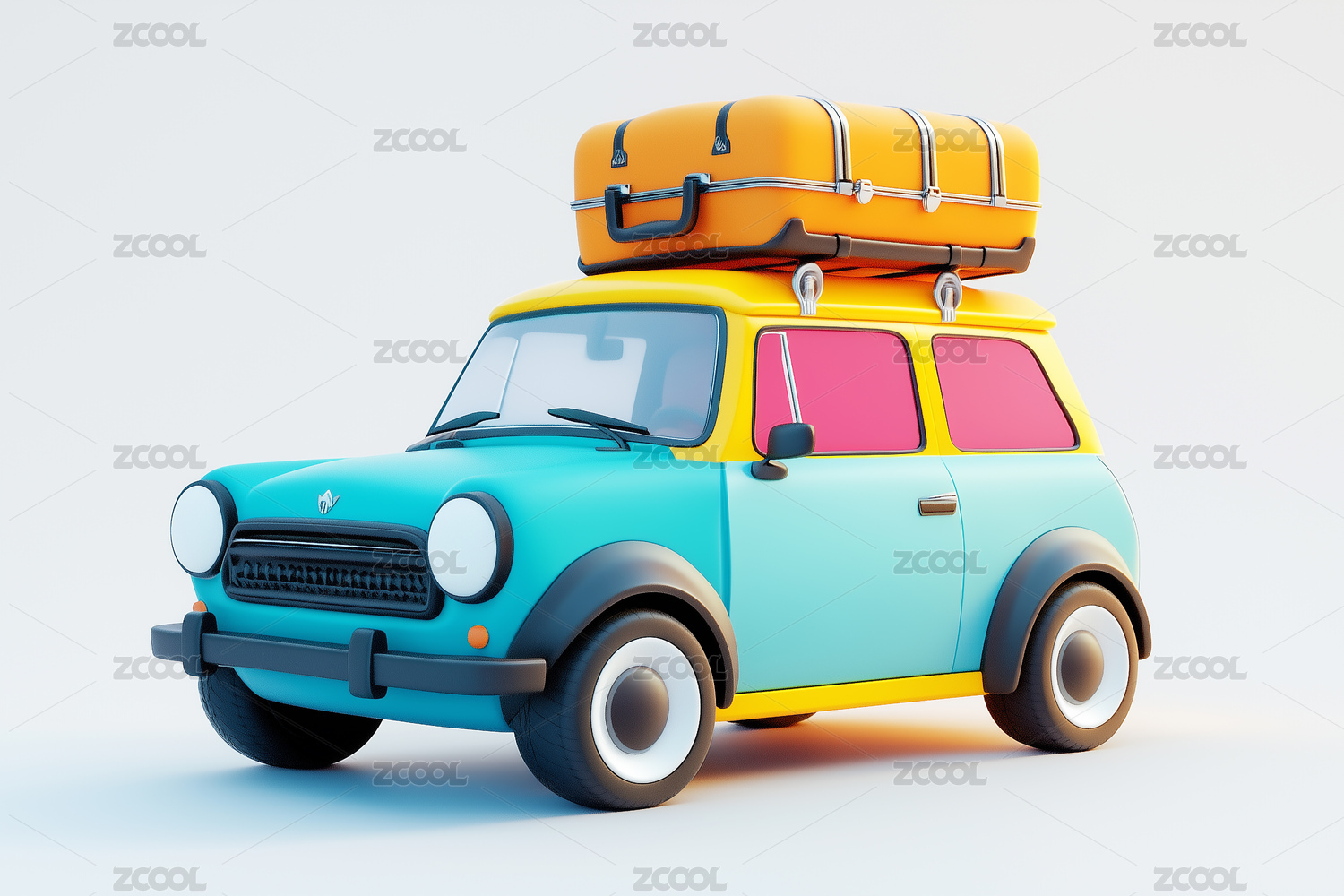 汽车旅行车3D插画,节假日黄金周自驾游出