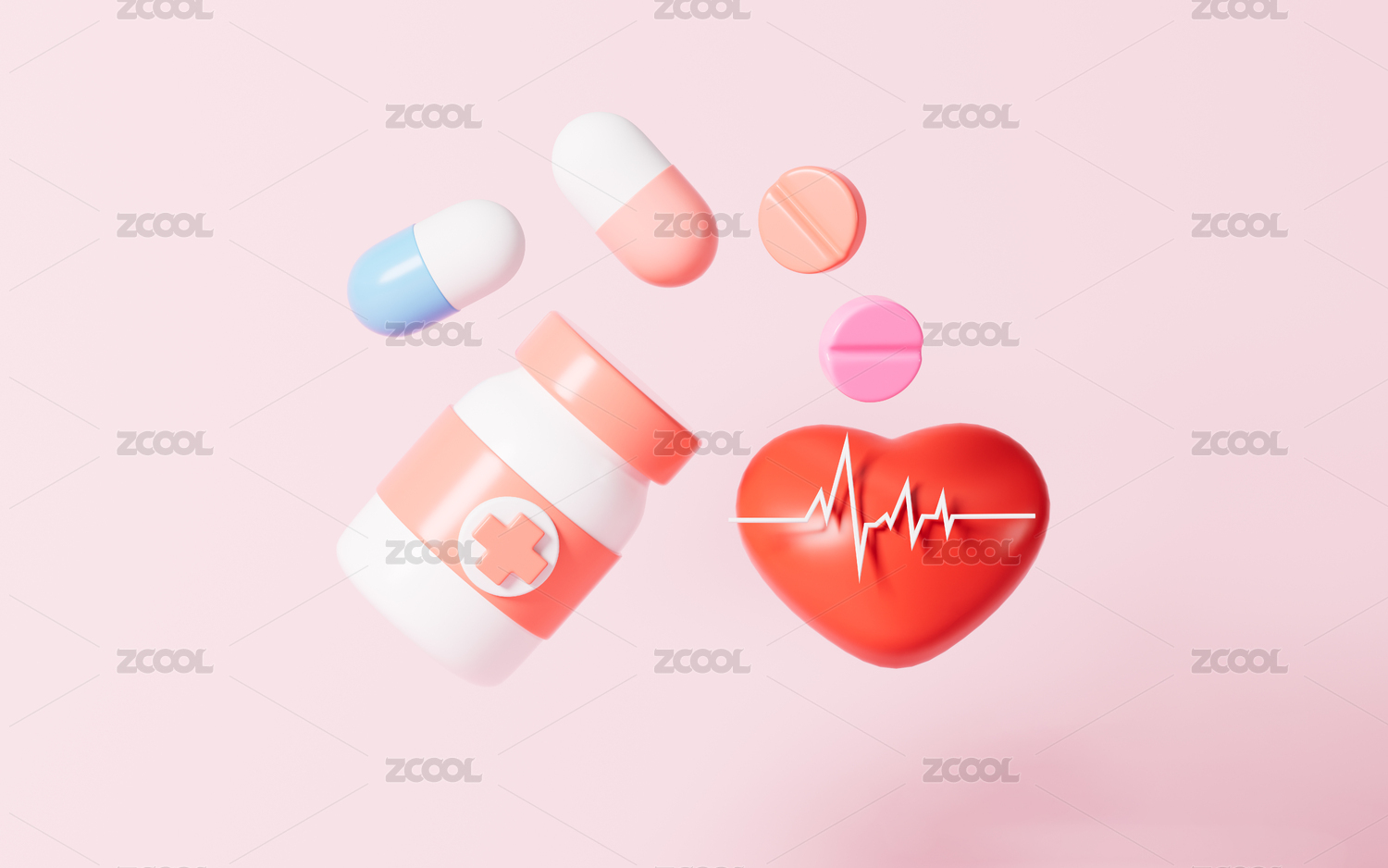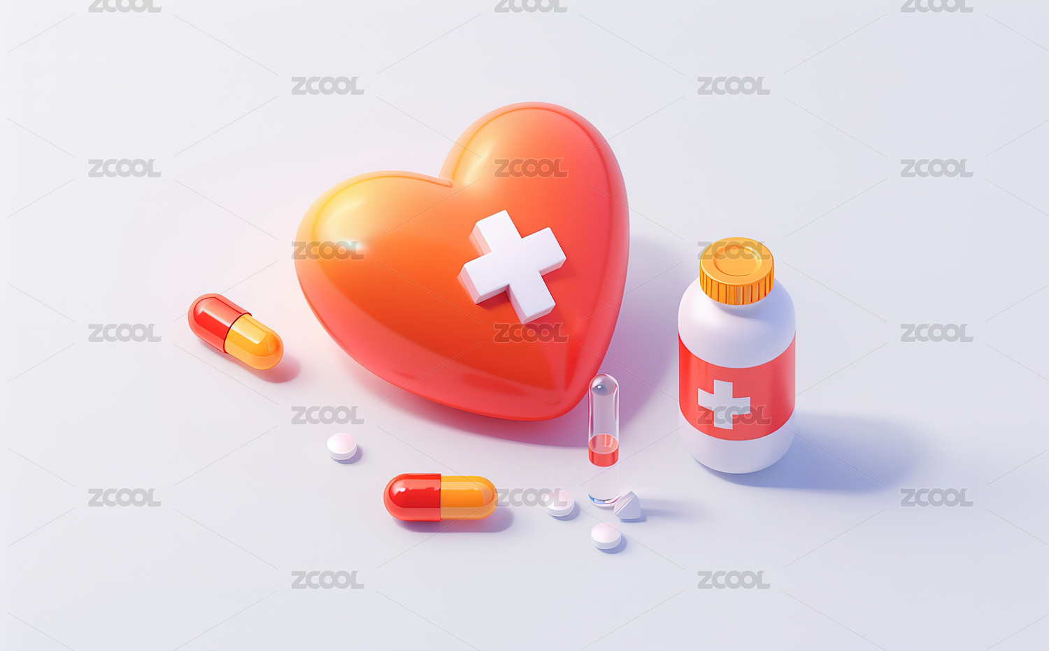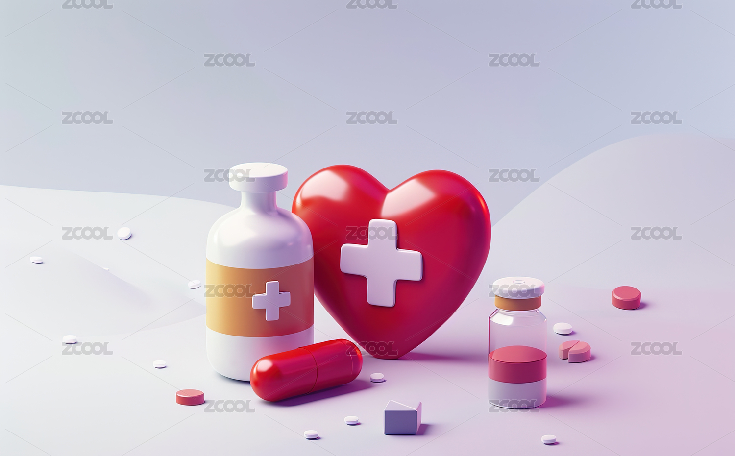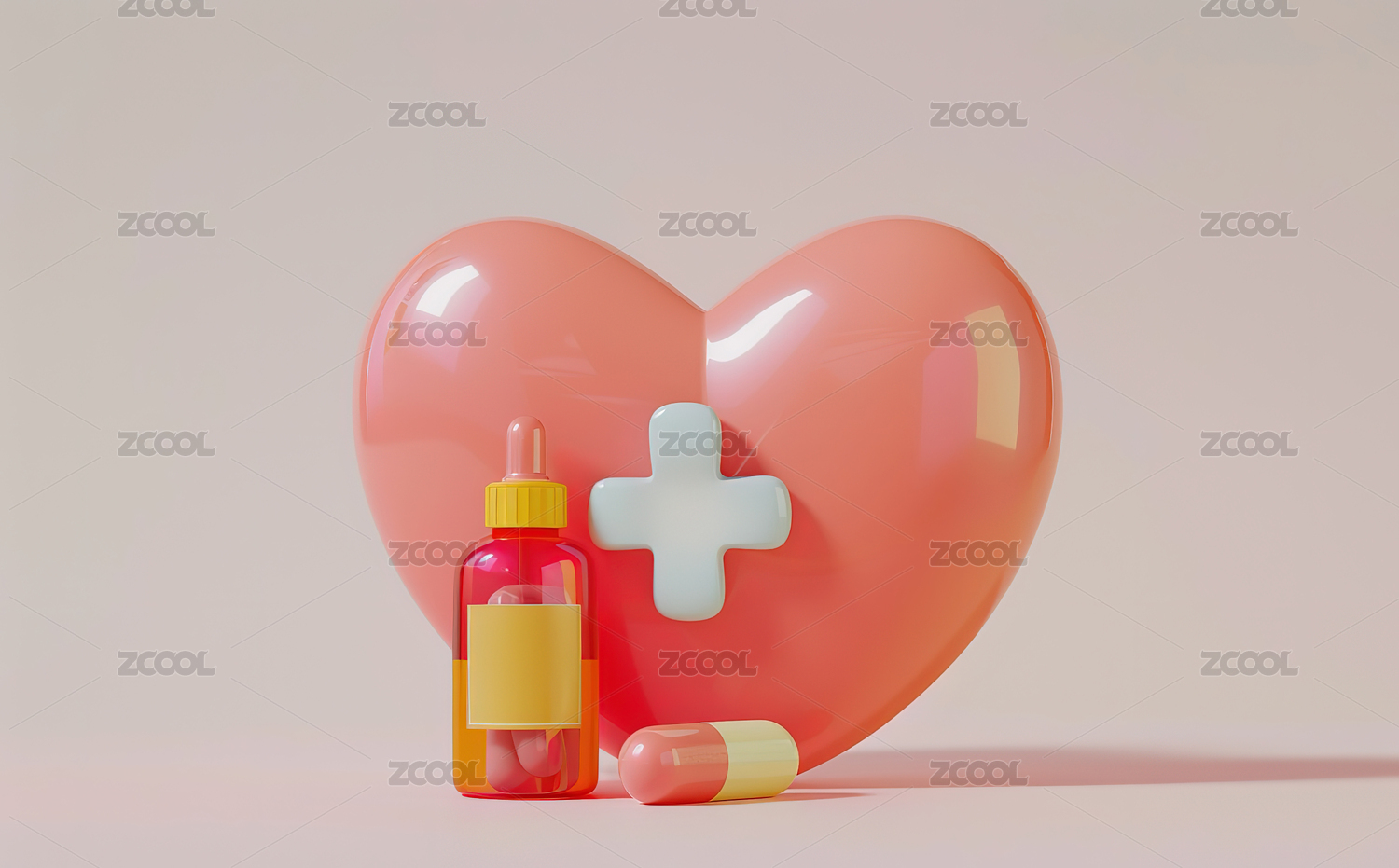 卡通药物与心脏模型3D渲染