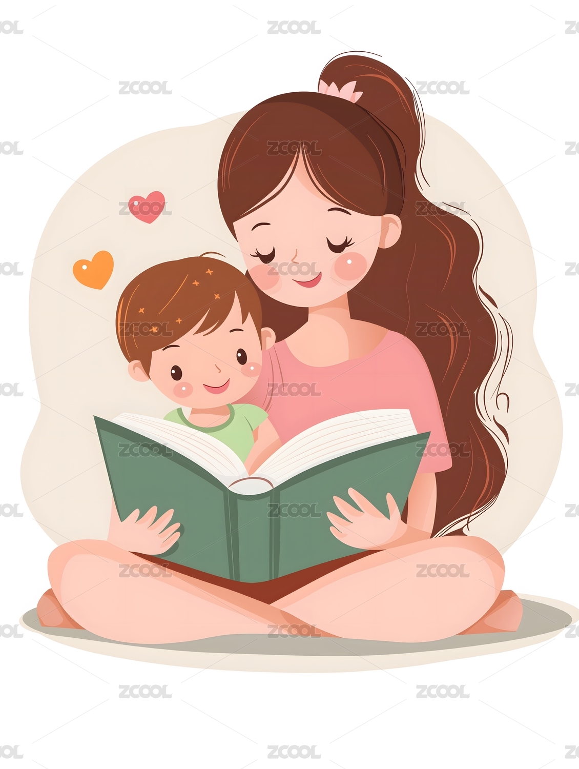 妈妈,女儿,看书,插画,读书,世界读书日,童年,设计,剪贴画,讲故事