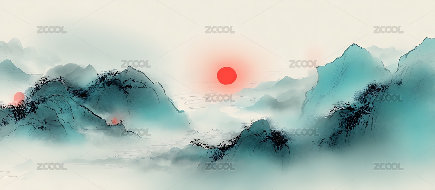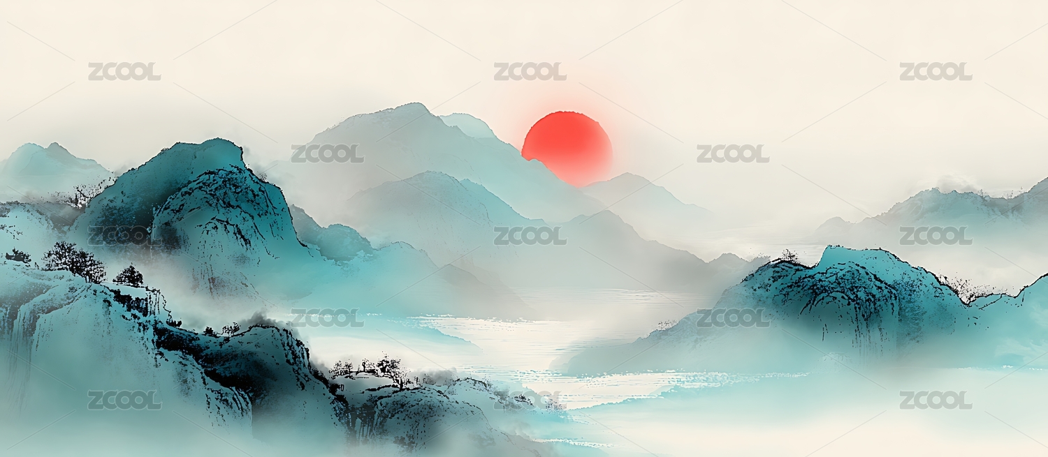 新中式,山水画,水墨画,晕染,意境,写意,山水,文化,机理,河流