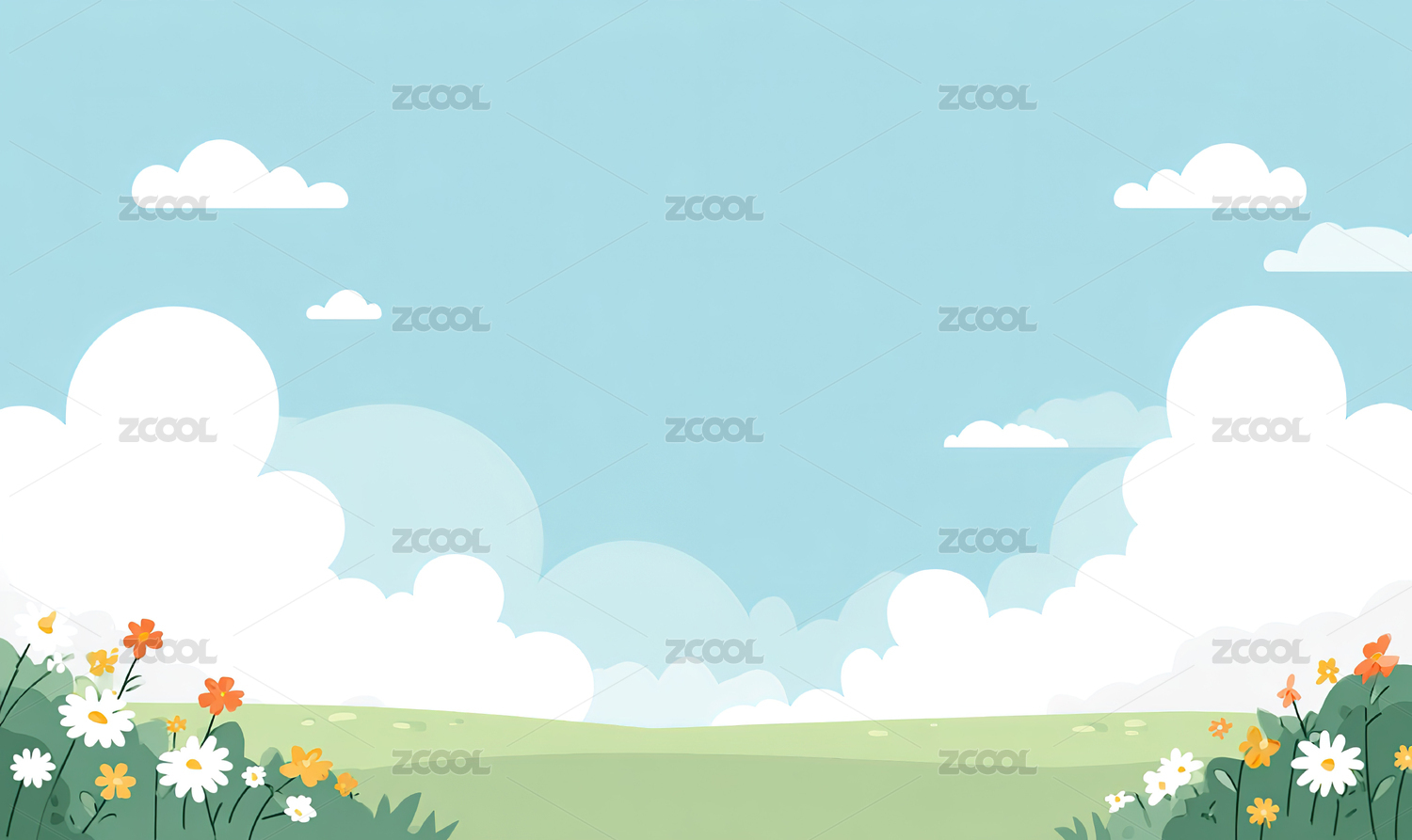 草地,花朵,蓝天,白云,阳光,明媚,大树,自然,美丽,清新