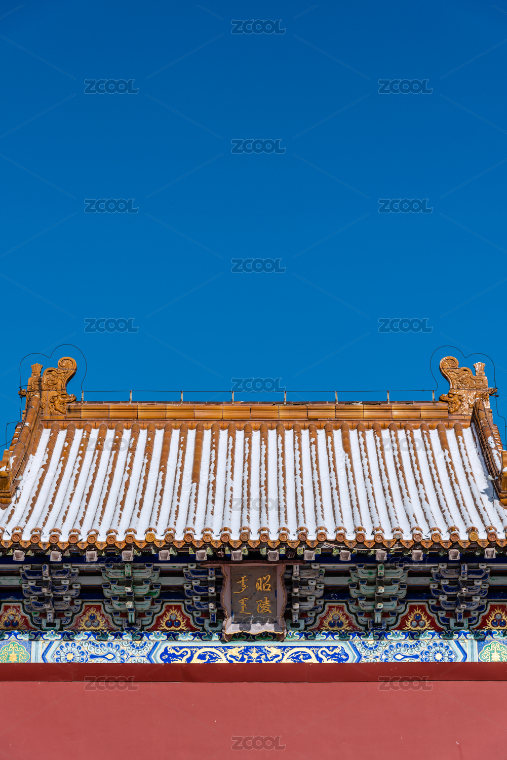 冬天雪后中国辽宁沈阳清昭陵北陵公园大门
