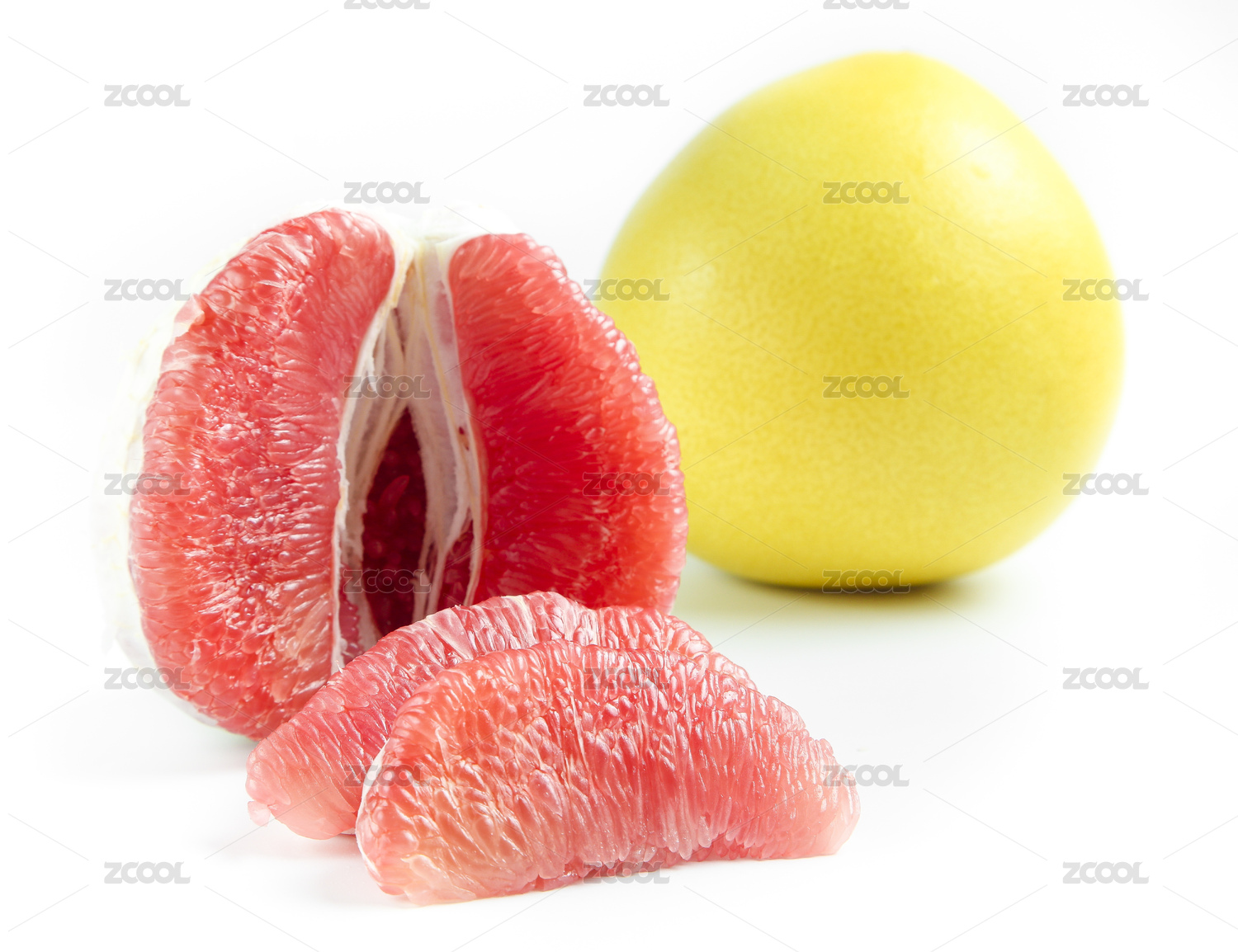 白背景新鲜水果红心蜜柚