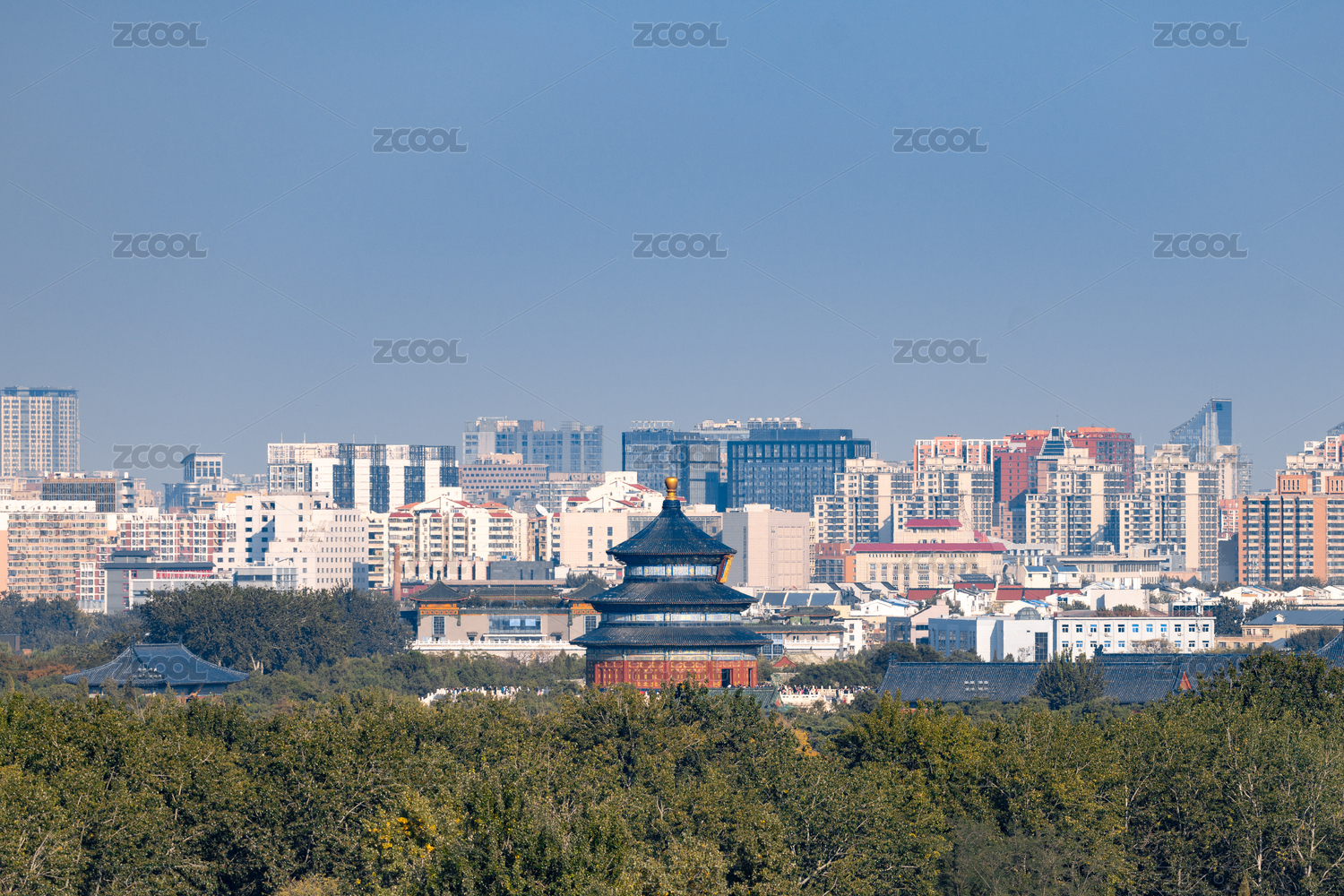 北京燕山下的钟鼓楼白塔城市中轴线远景图