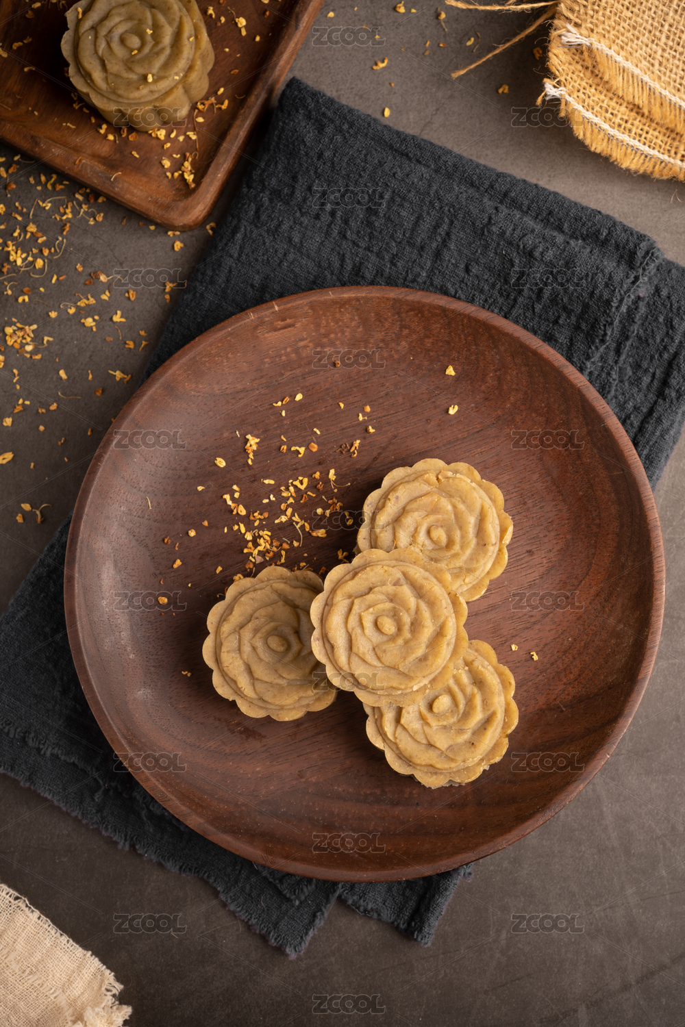 盘子里的传统糕点,绿豆糕,中秋月饼