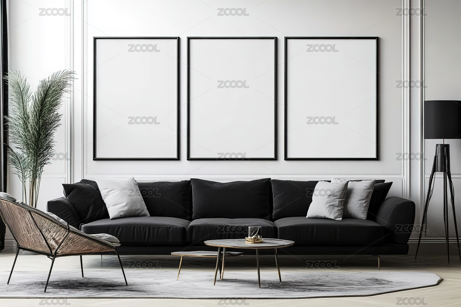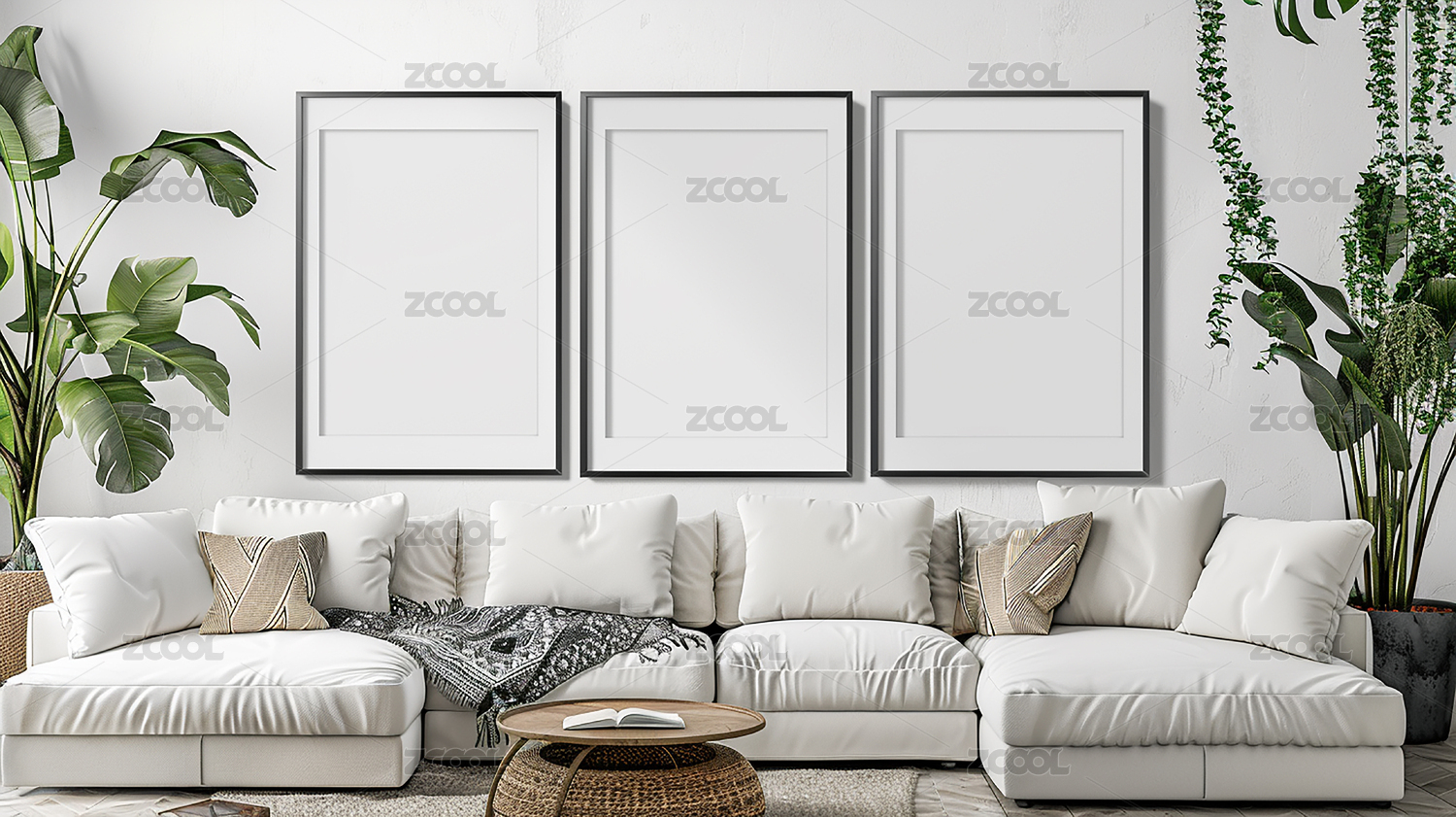 现代简约的室内装饰和墙壁海报,装饰画空白