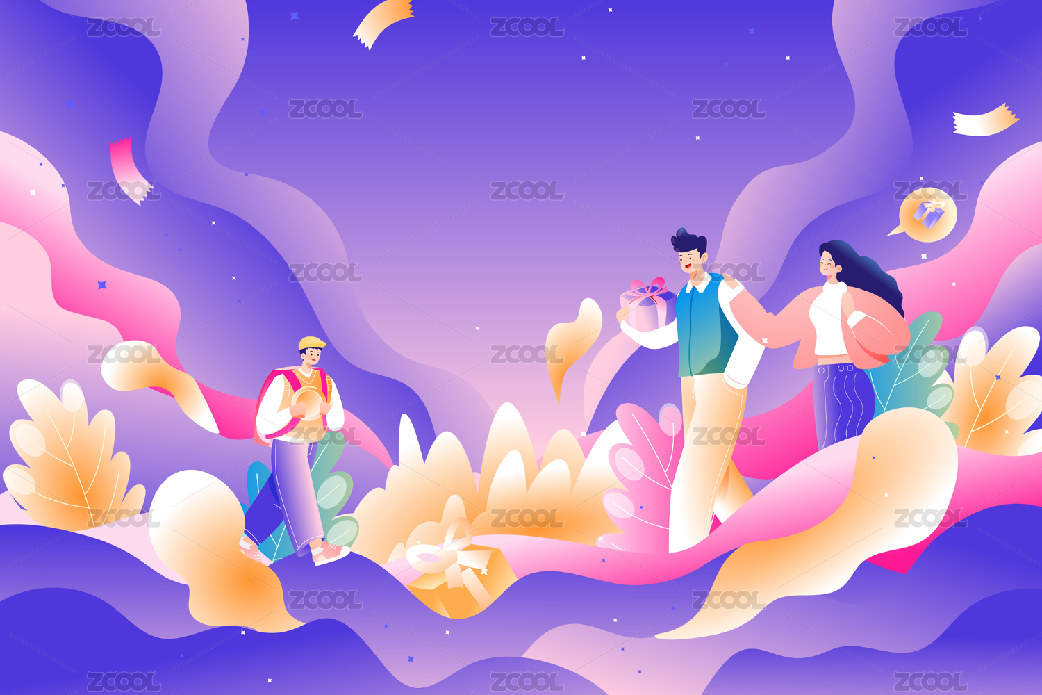 卡通,渐变,扁平,插画,插图,背景,元素,矢量,互联网,商务