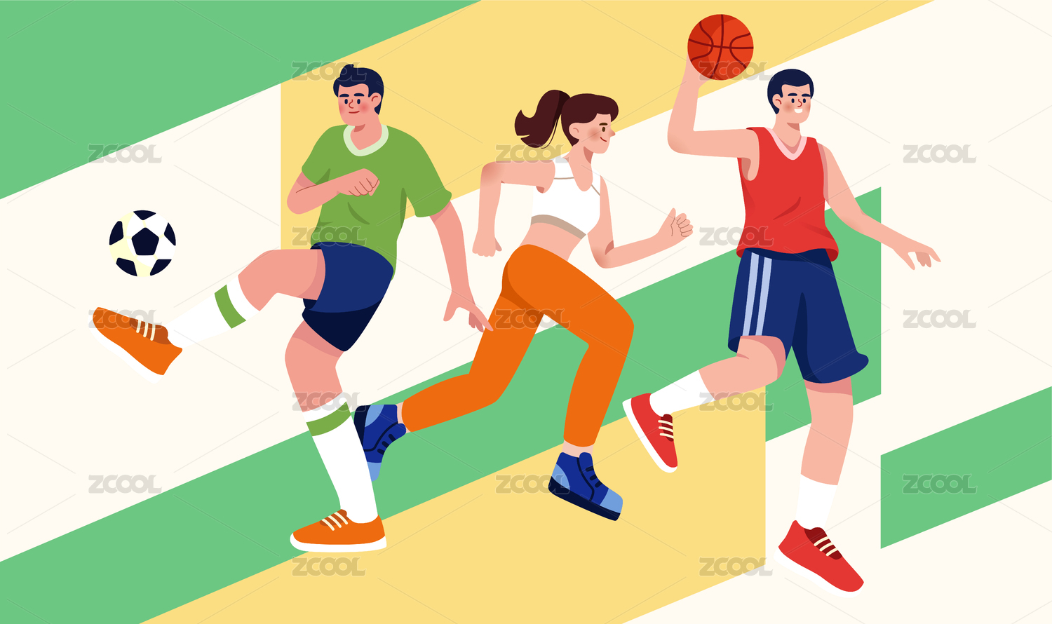 扁平全民运动会插画
