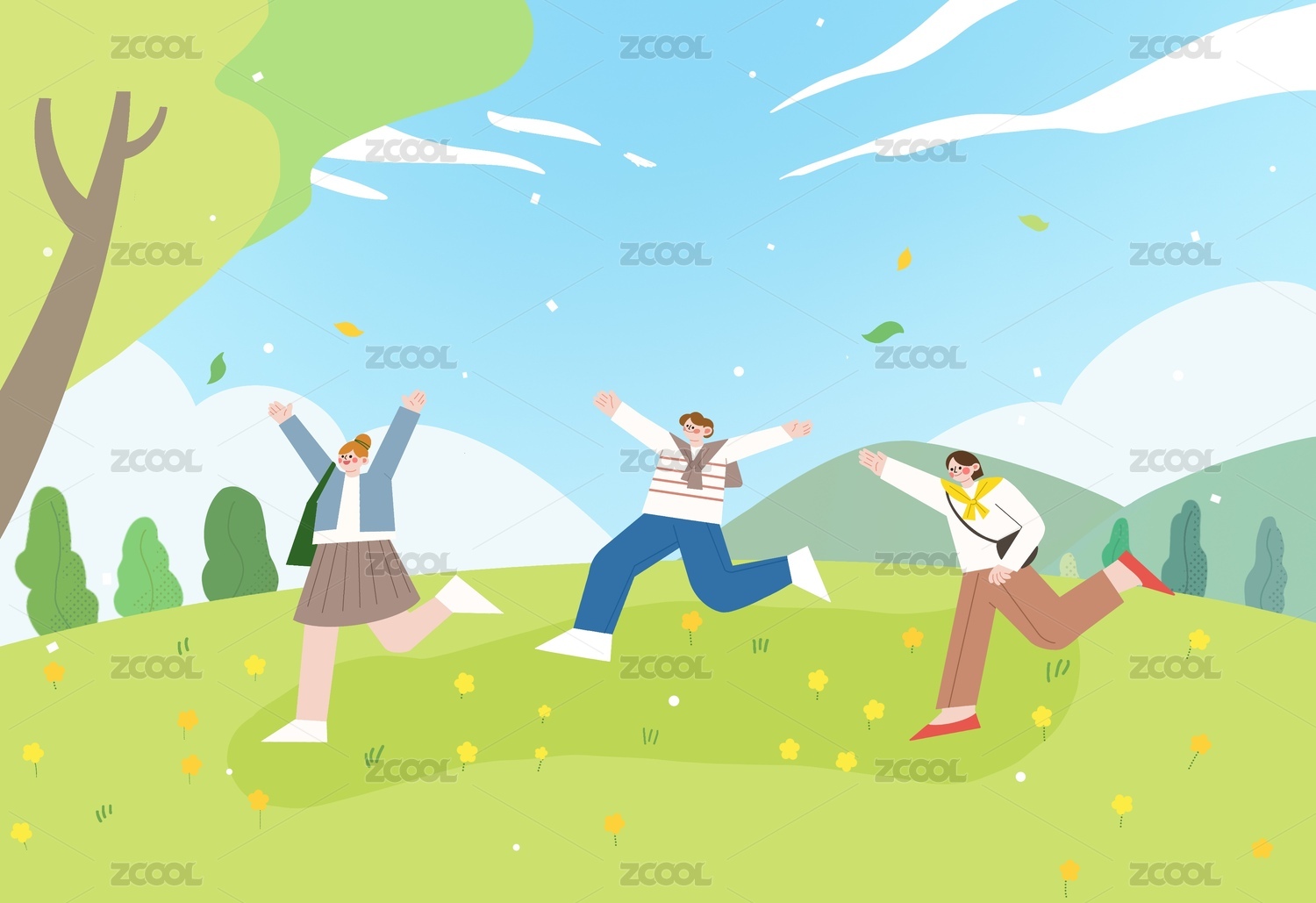 春季朋友出游插画