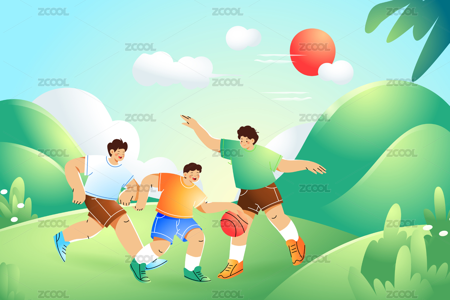儿童节打篮球矢量插画
