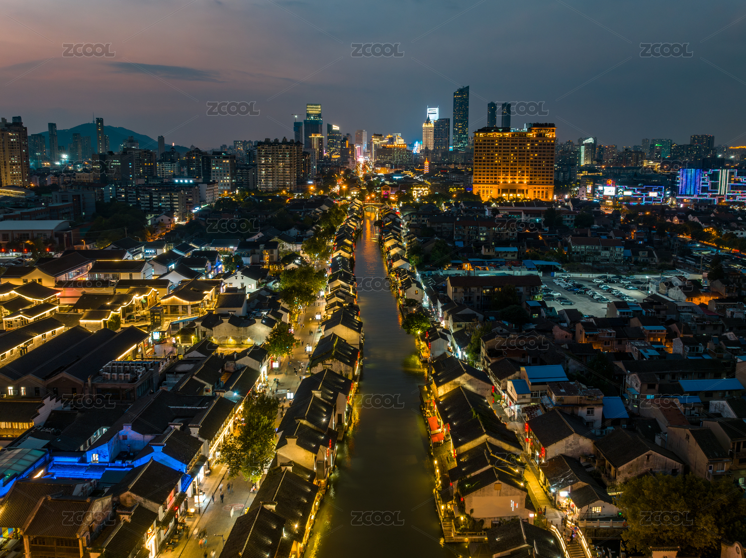 南长街,夜景,夜晚,航拍,古城,古镇,古建筑,江南,文化,历史