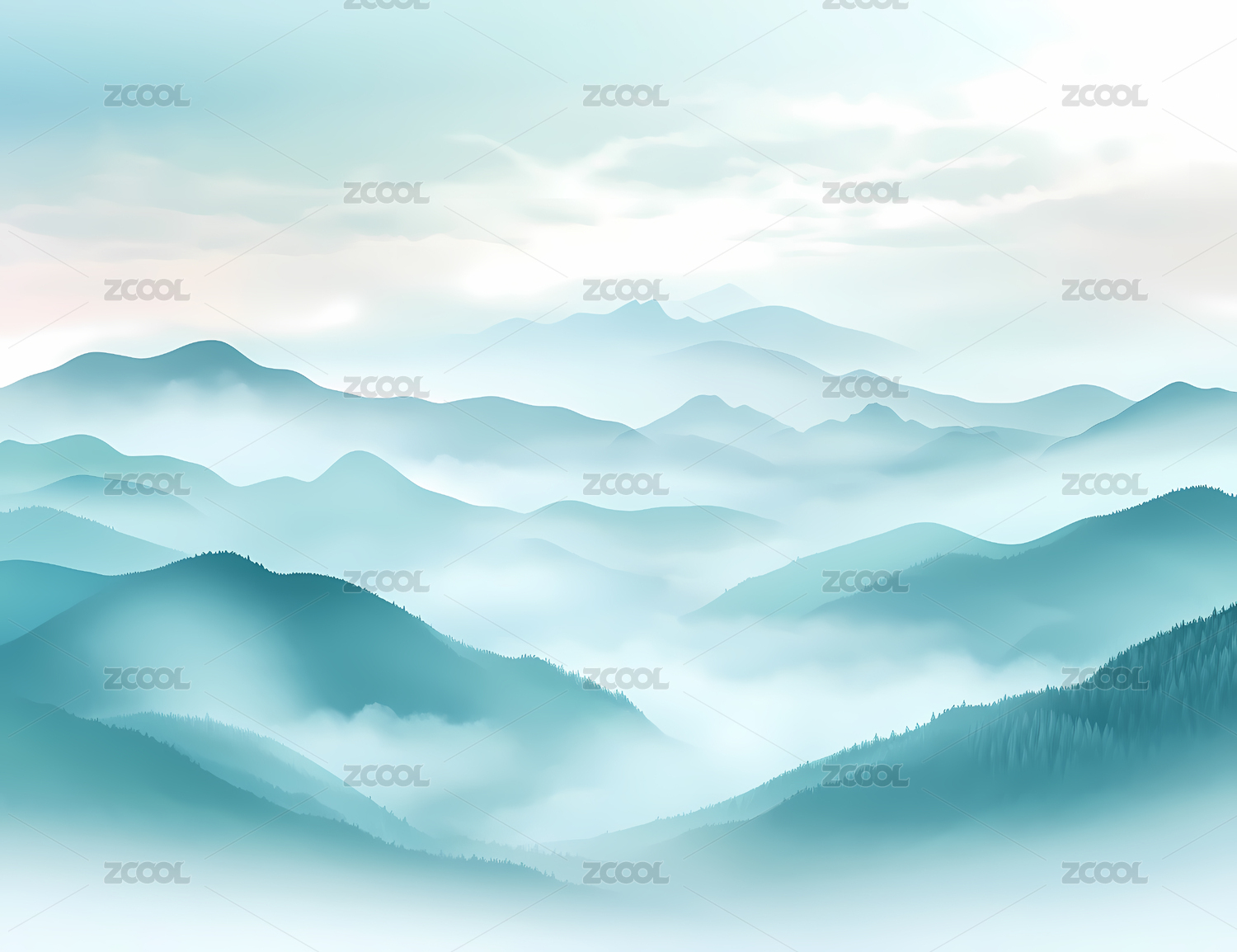 淡蓝山峦间的朦胧诗意景致
