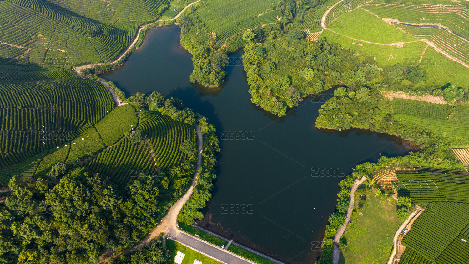 浙江,杭州,西湖景区,绿色,龙坞茶园风光,亭子,大自然,自然风光,植物,航拍茶园