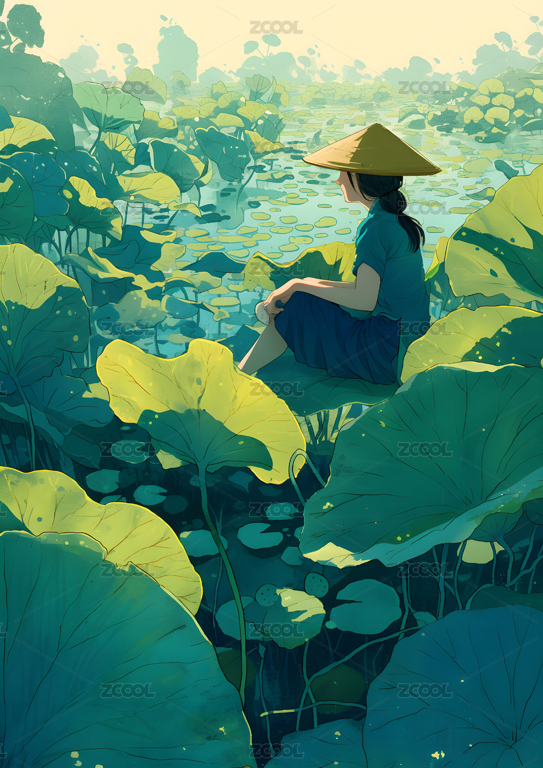 传统,户外,自然,谷雨,绿色,新中式风格,水墨画,国风,伞