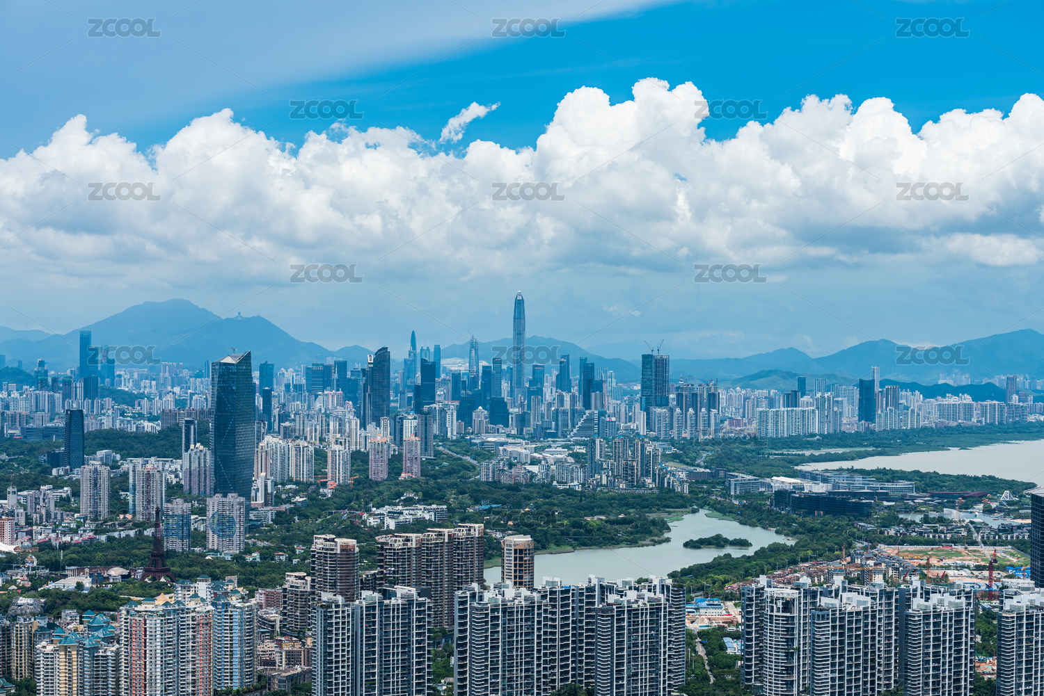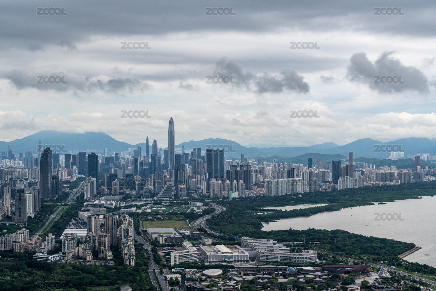 航拍中国华南粤港澳大湾区广东深圳福田都市风光