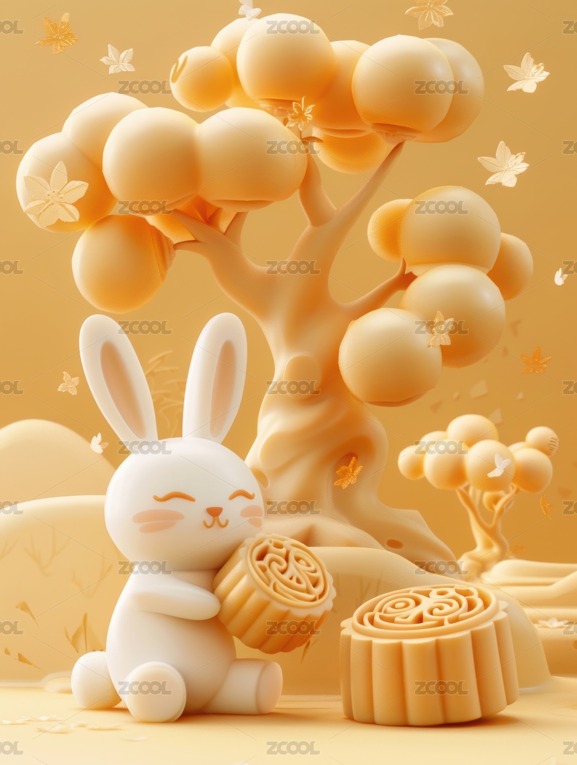 中秋节,八月十五,月饼,兔子,黄色,传统,树,小吃,落叶,节日