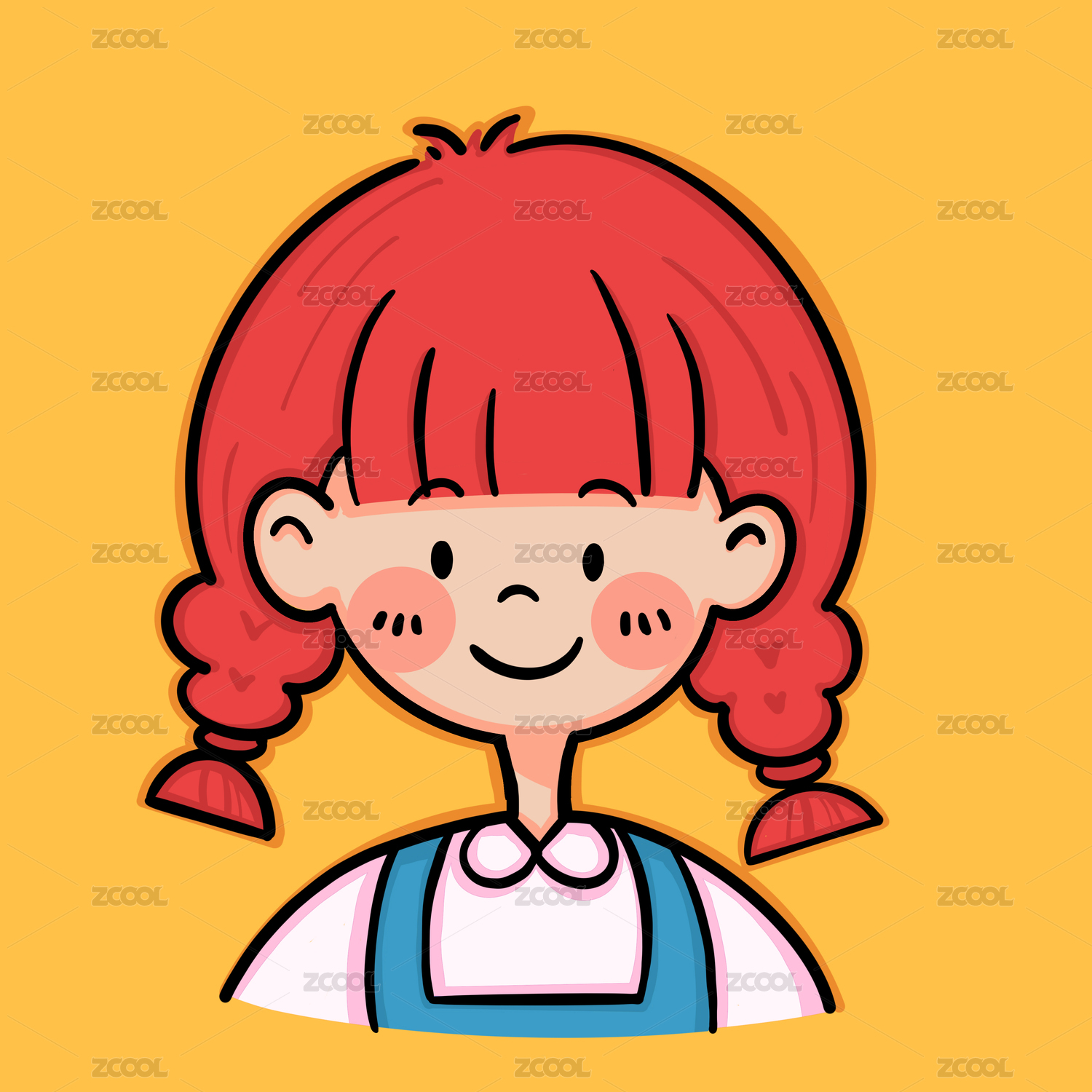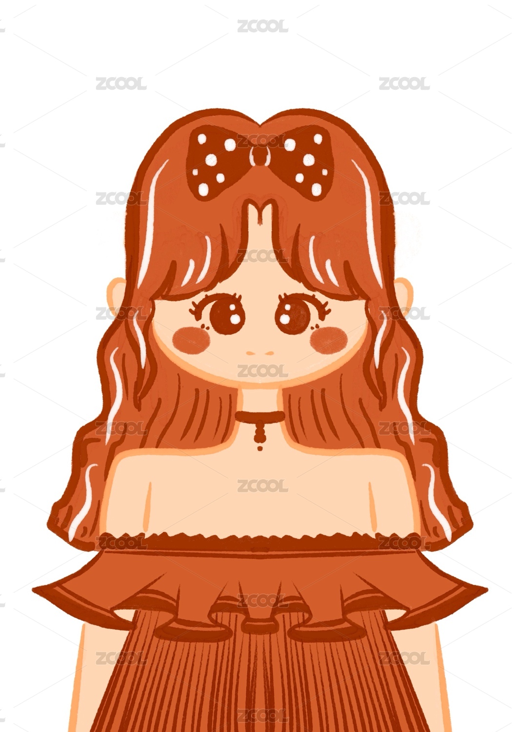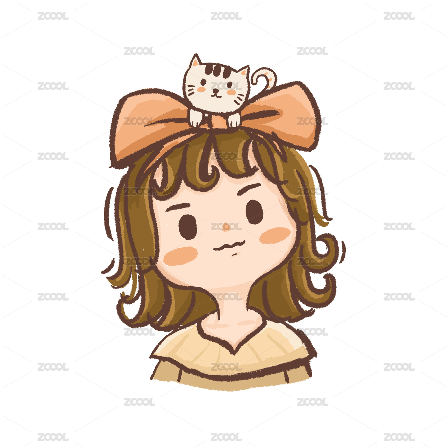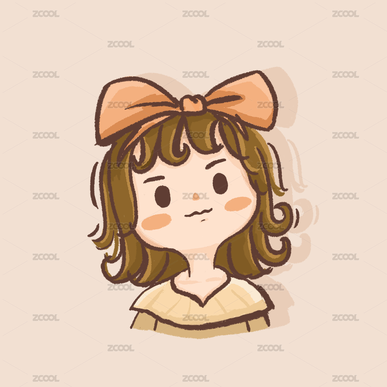 戴蝴蝶结的卷发小女孩卡通描边风格头像
