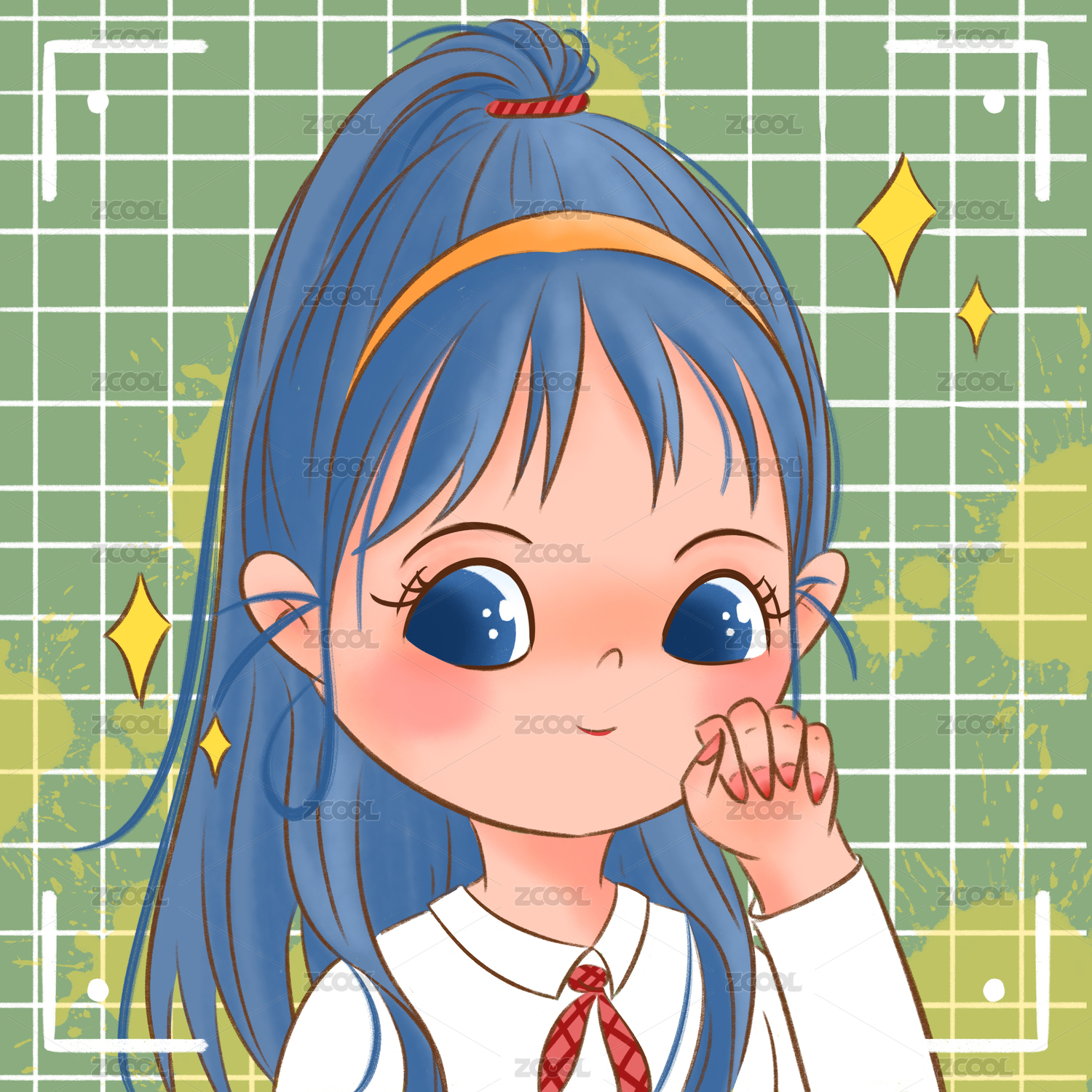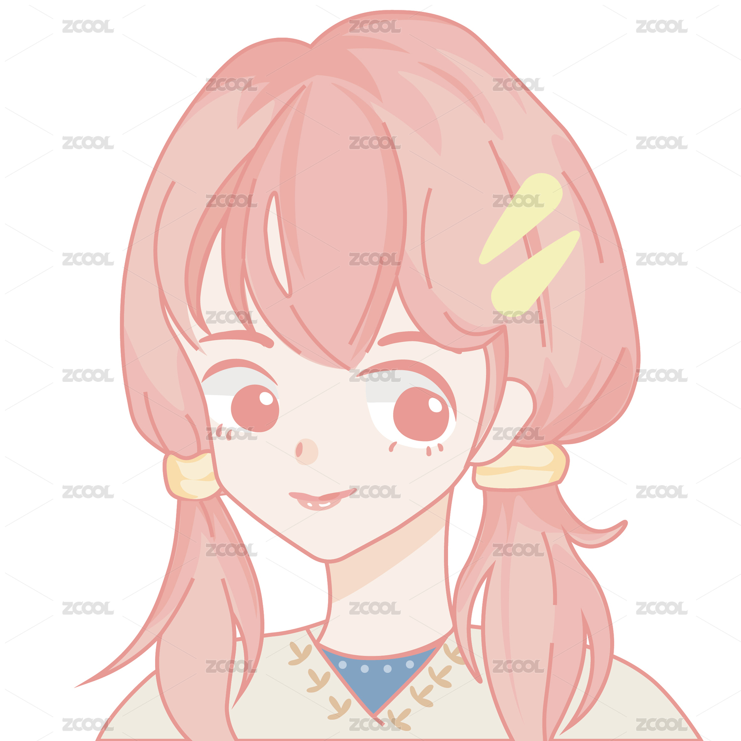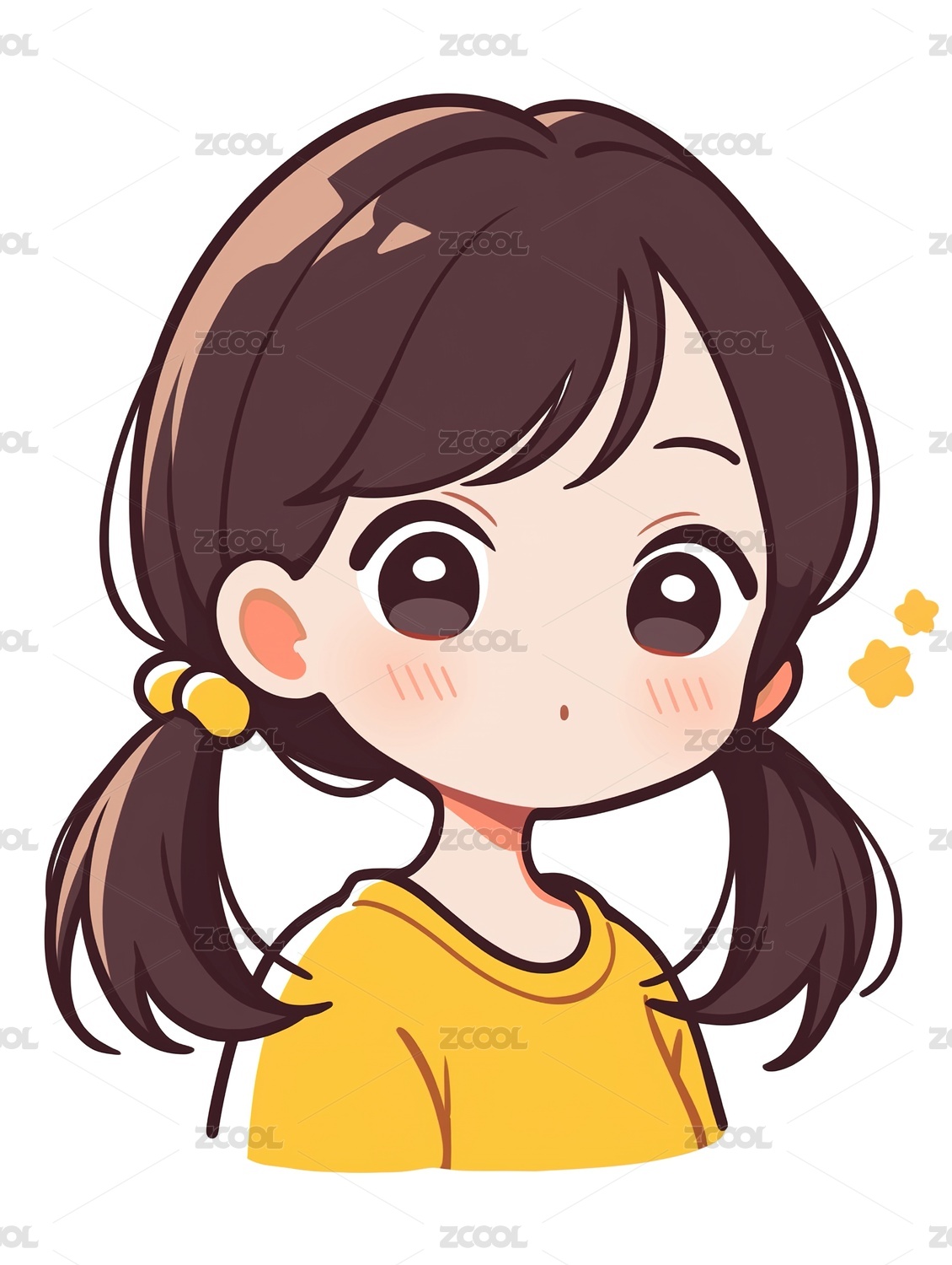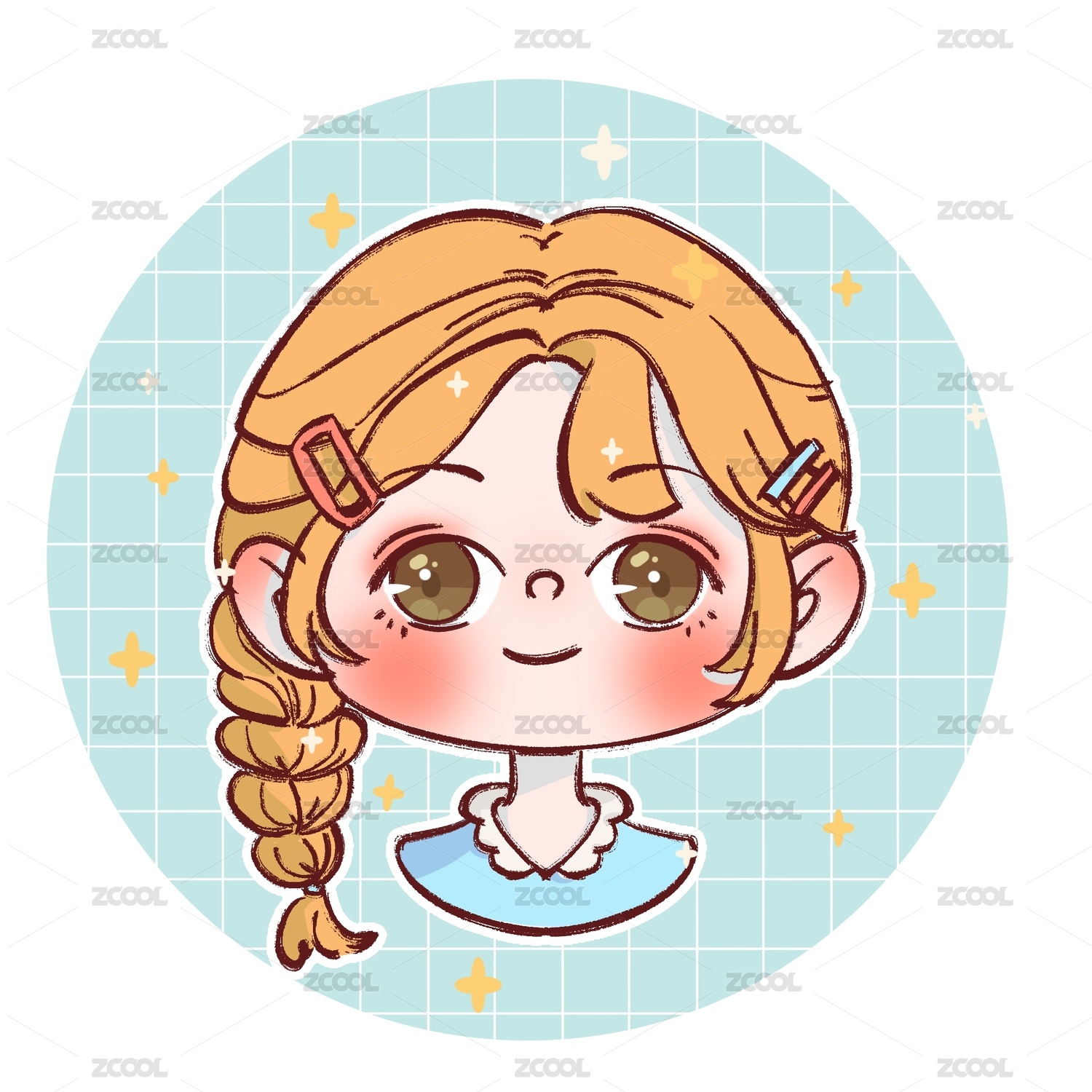 戴蝴蝶结的卷发小女孩卡通描边风格头像