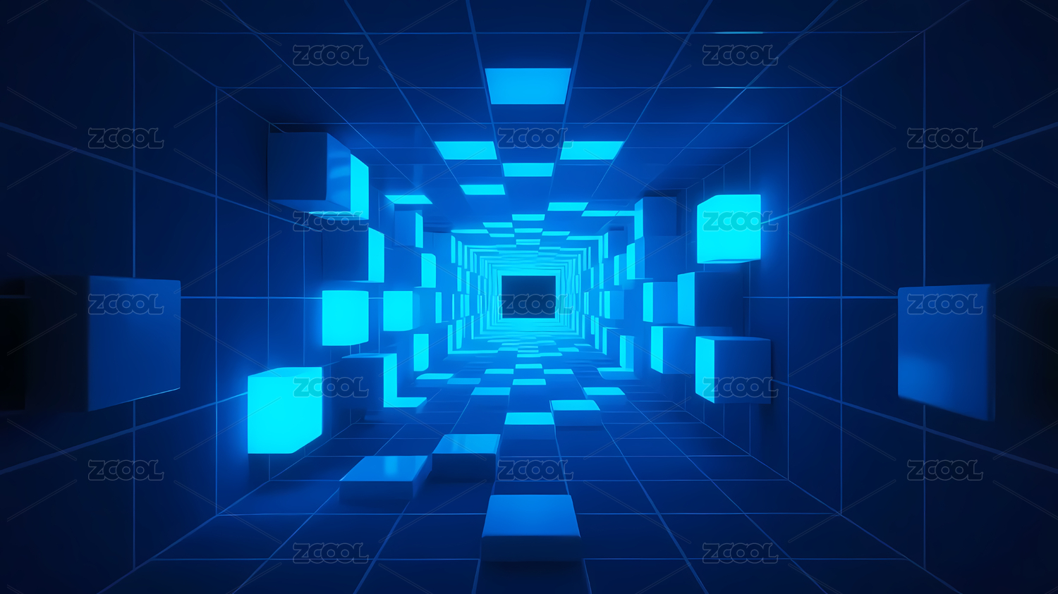 蓝色方块未来隧道