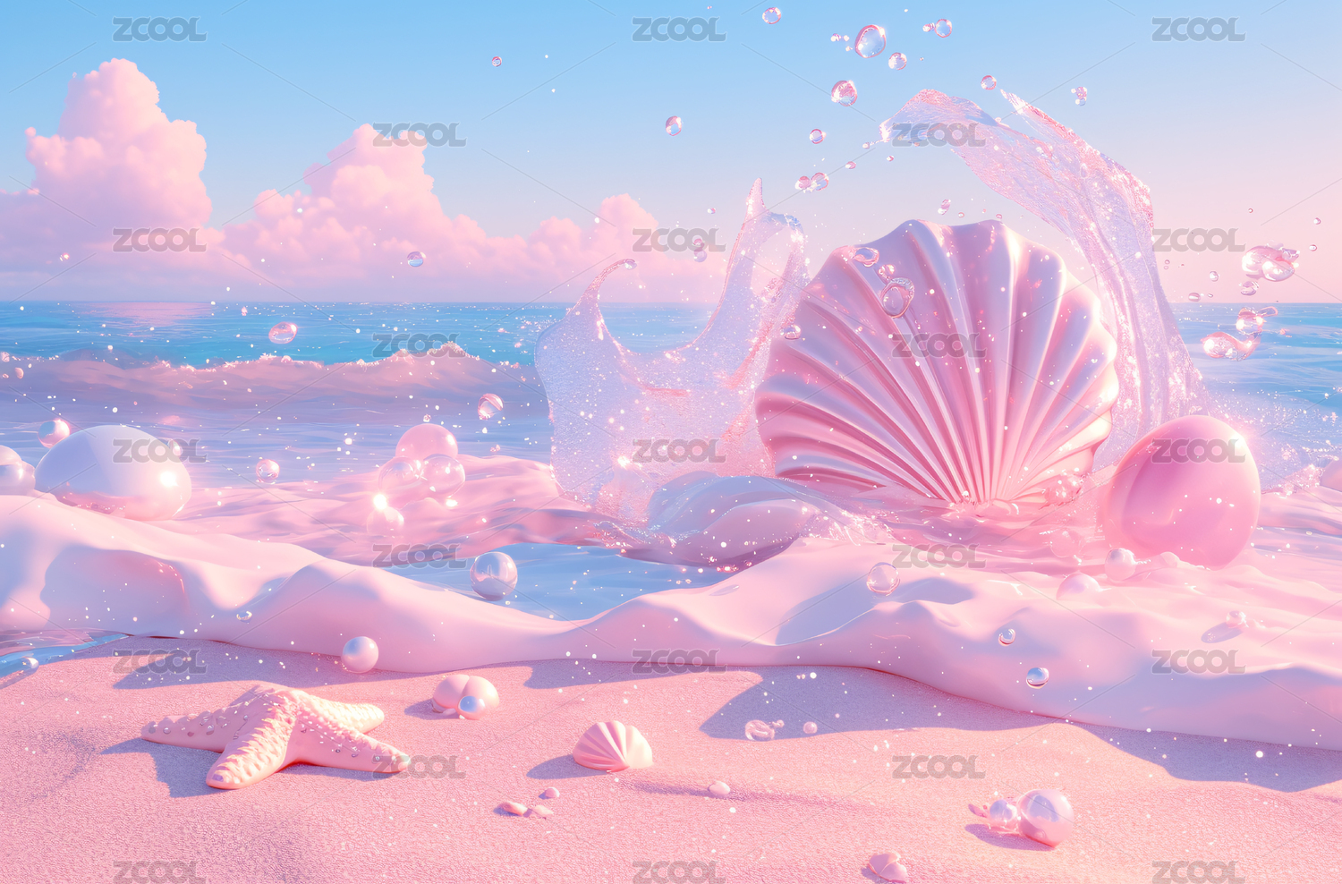 海洋,大海,珍珠,贝壳,珊瑚,背景,护肤品,美妆,清新,自然
