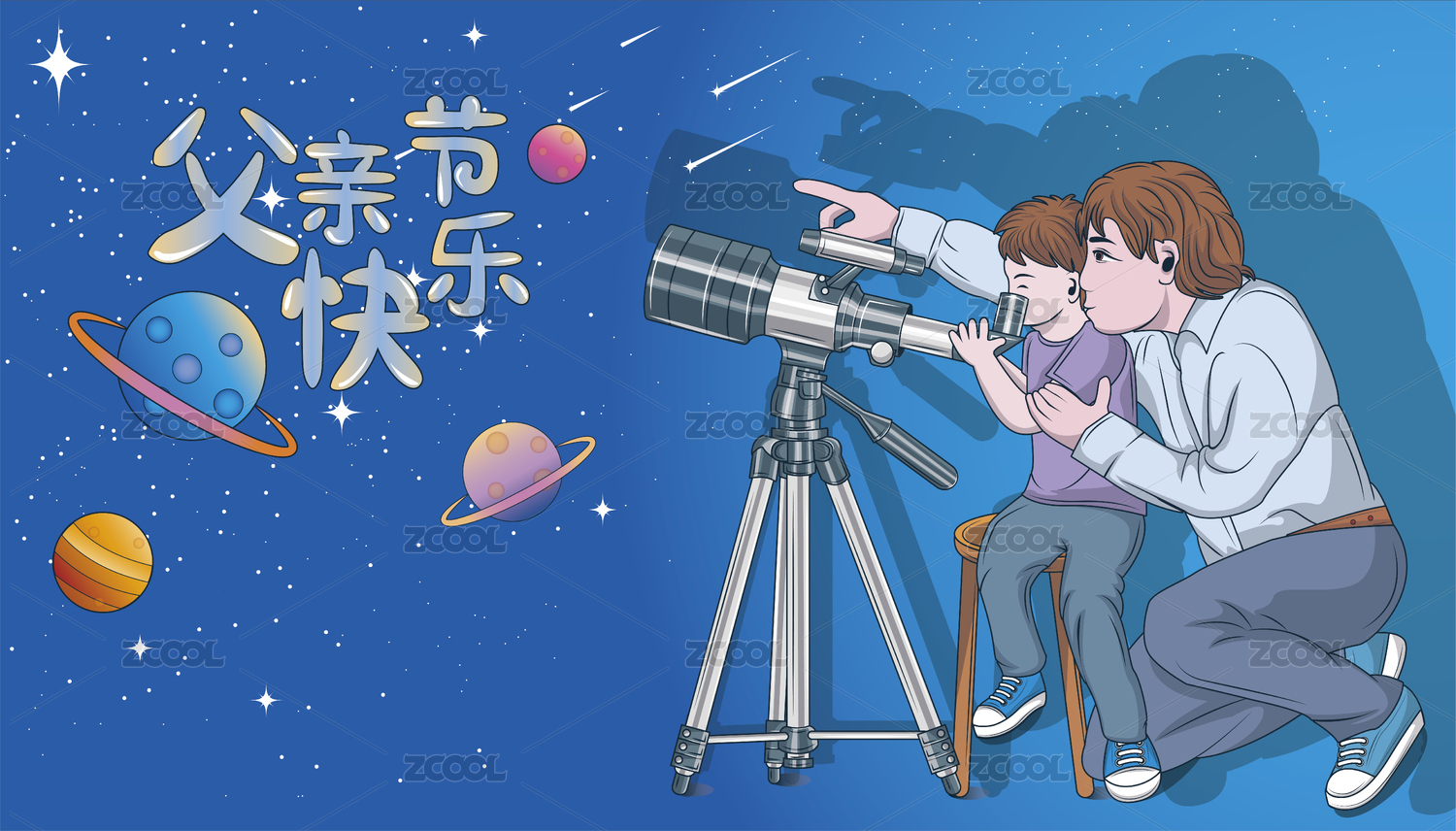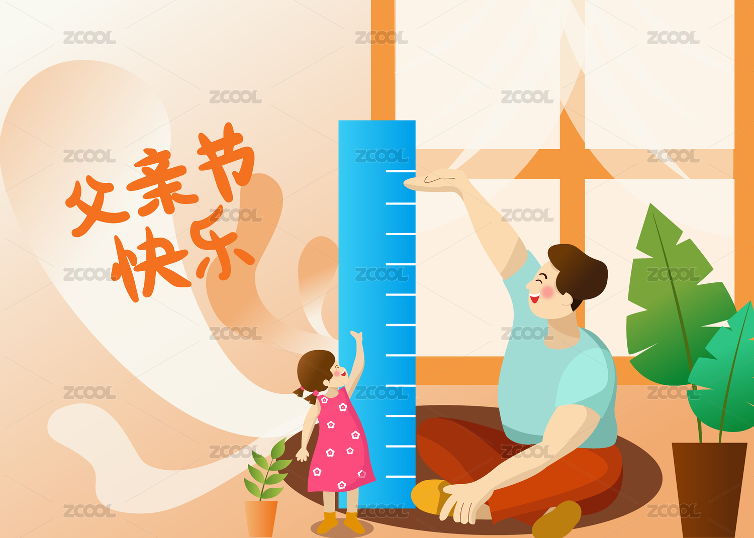 卡通父亲节亲子美好旧时回忆时间时光亲情情