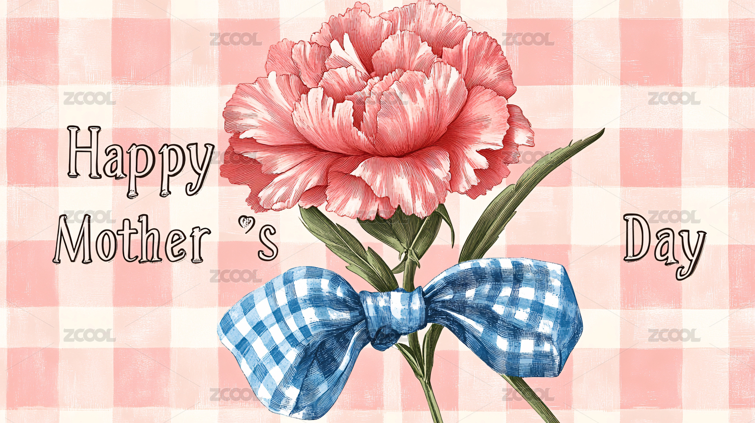 母亲节粉色格纹背景康乃馨花朵