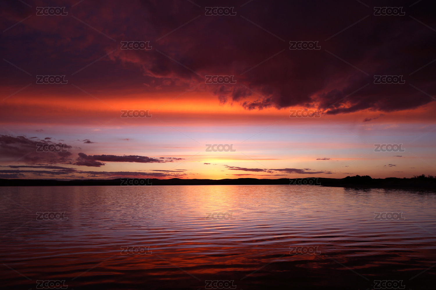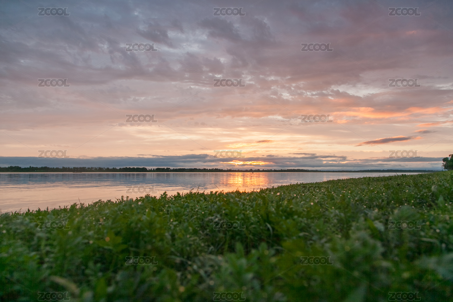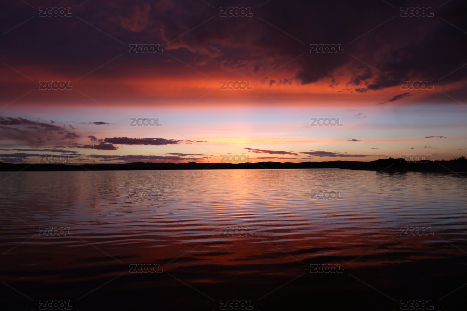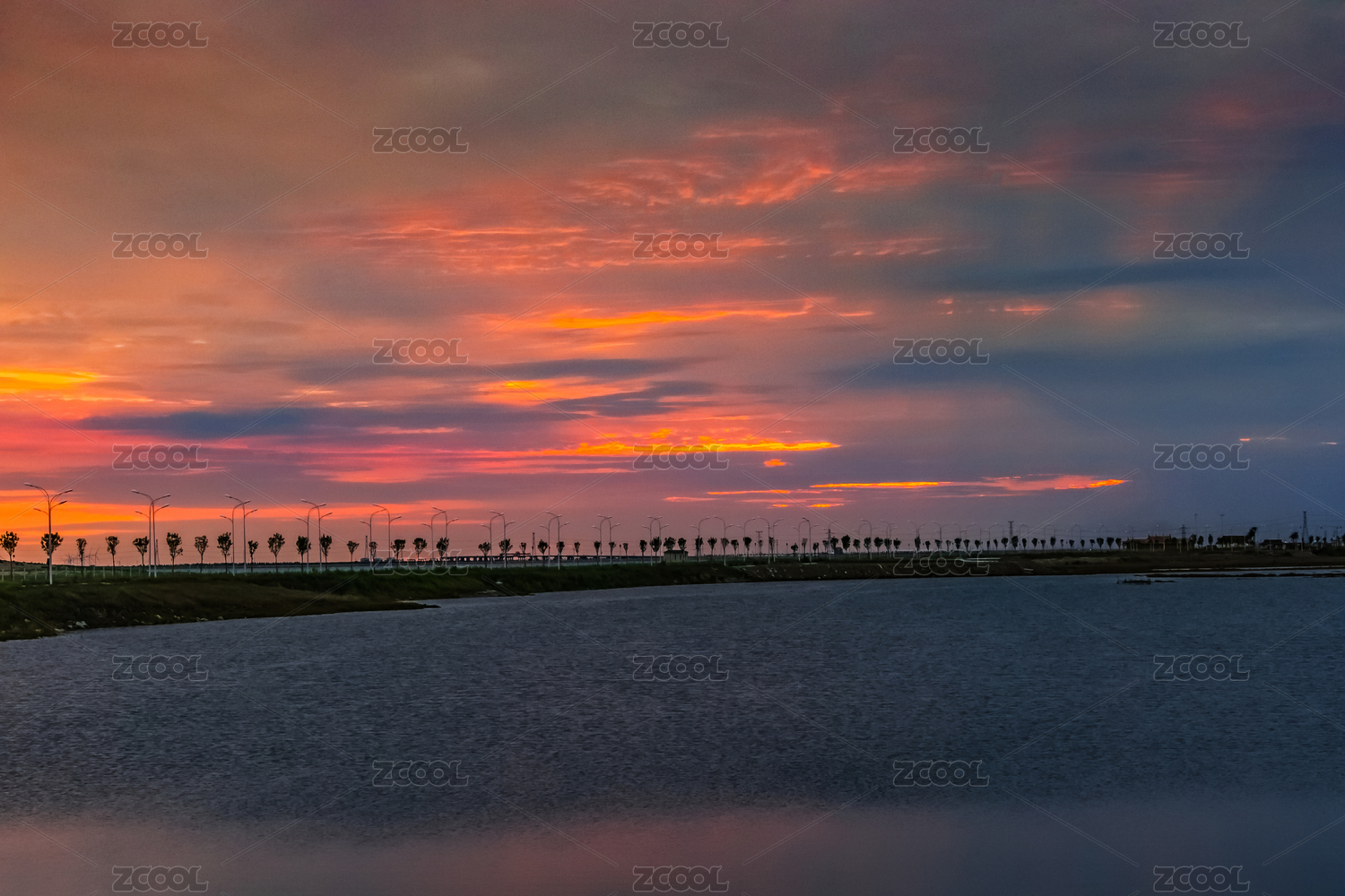 中国苏州阳澄湖晚霞景色