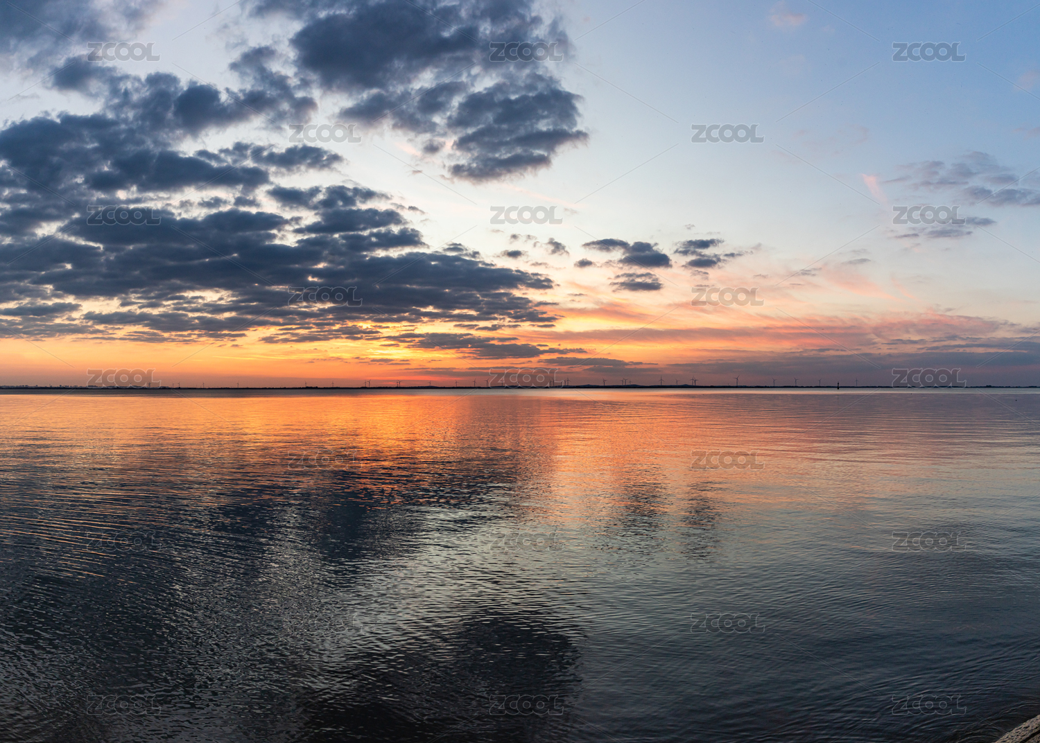河北省黄骅市渤海湾黄昏彩云贝壳湖自然景观