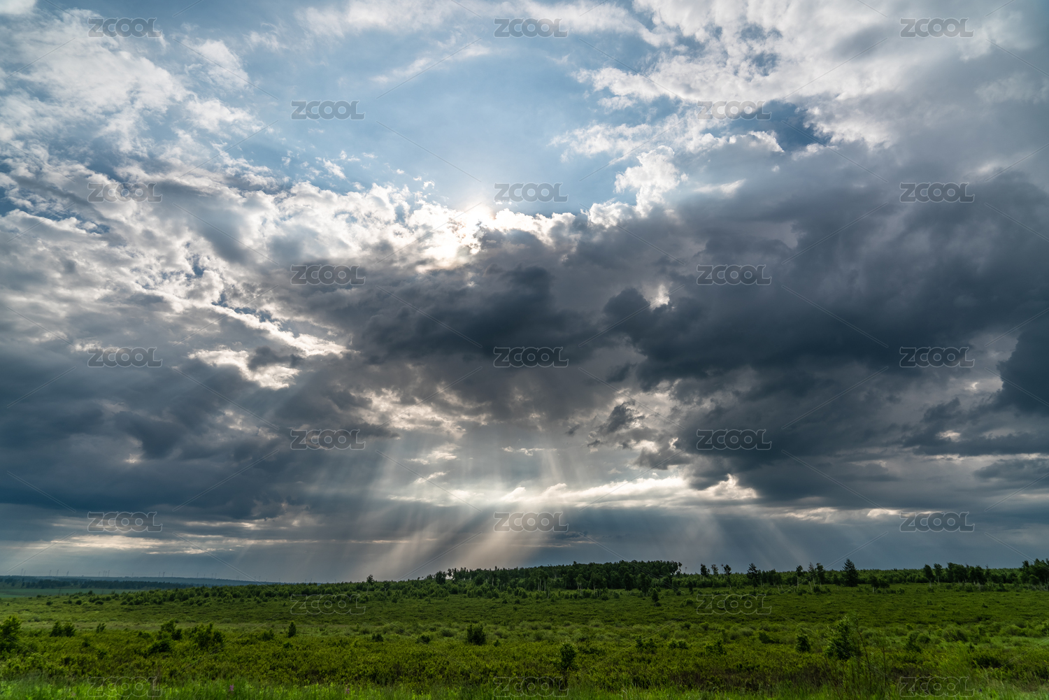 呼伦贝尔草原日落时分日光穿过云层