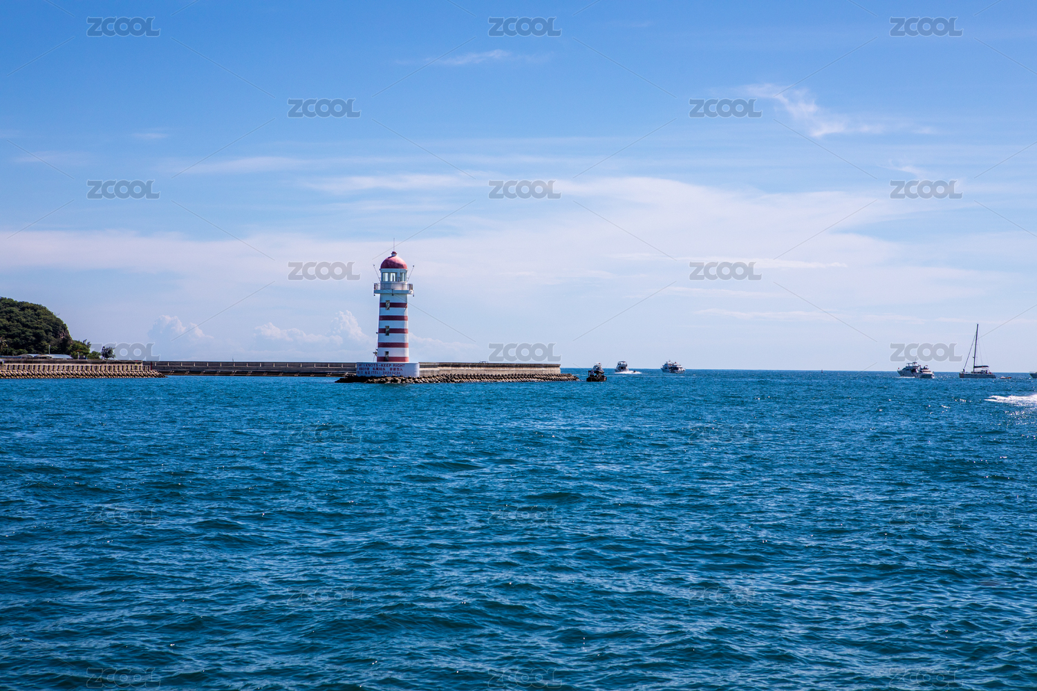 灯塔栈桥,灯塔,栈桥,渔船,海水,蓝色,景色,平静