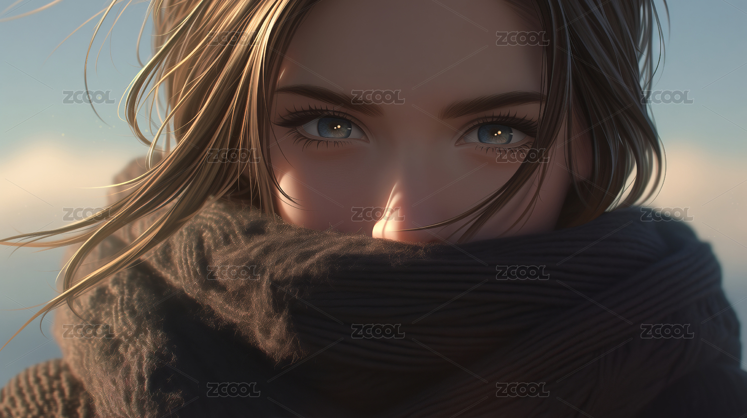 女孩,人物,长发,眼睛,瞳孔,扇凉,闪光,鼻子,嘴巴,娇俏