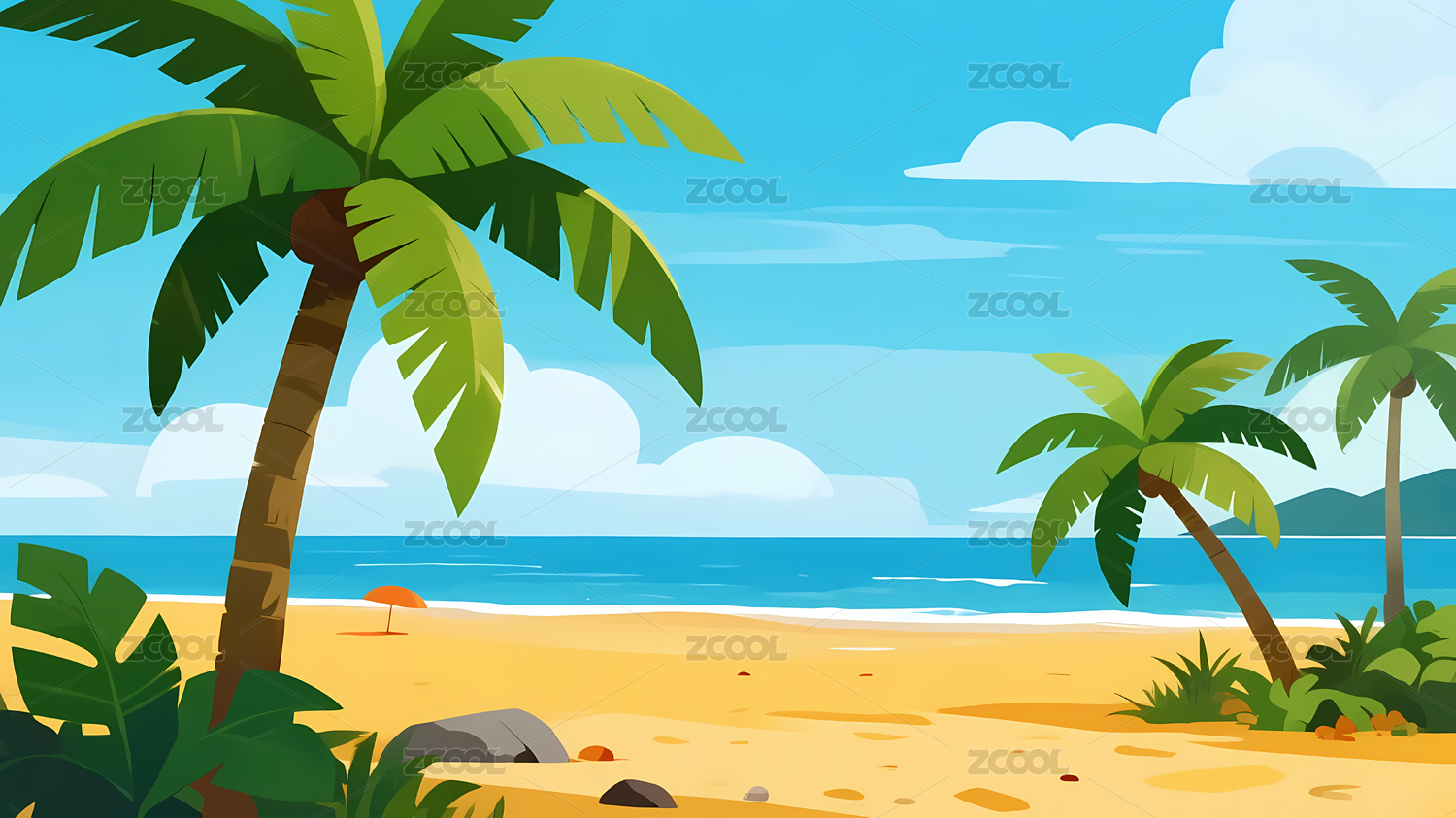 夏天,海边,海滩,椰子树,旅游,度假,风景,天空,植物,自然