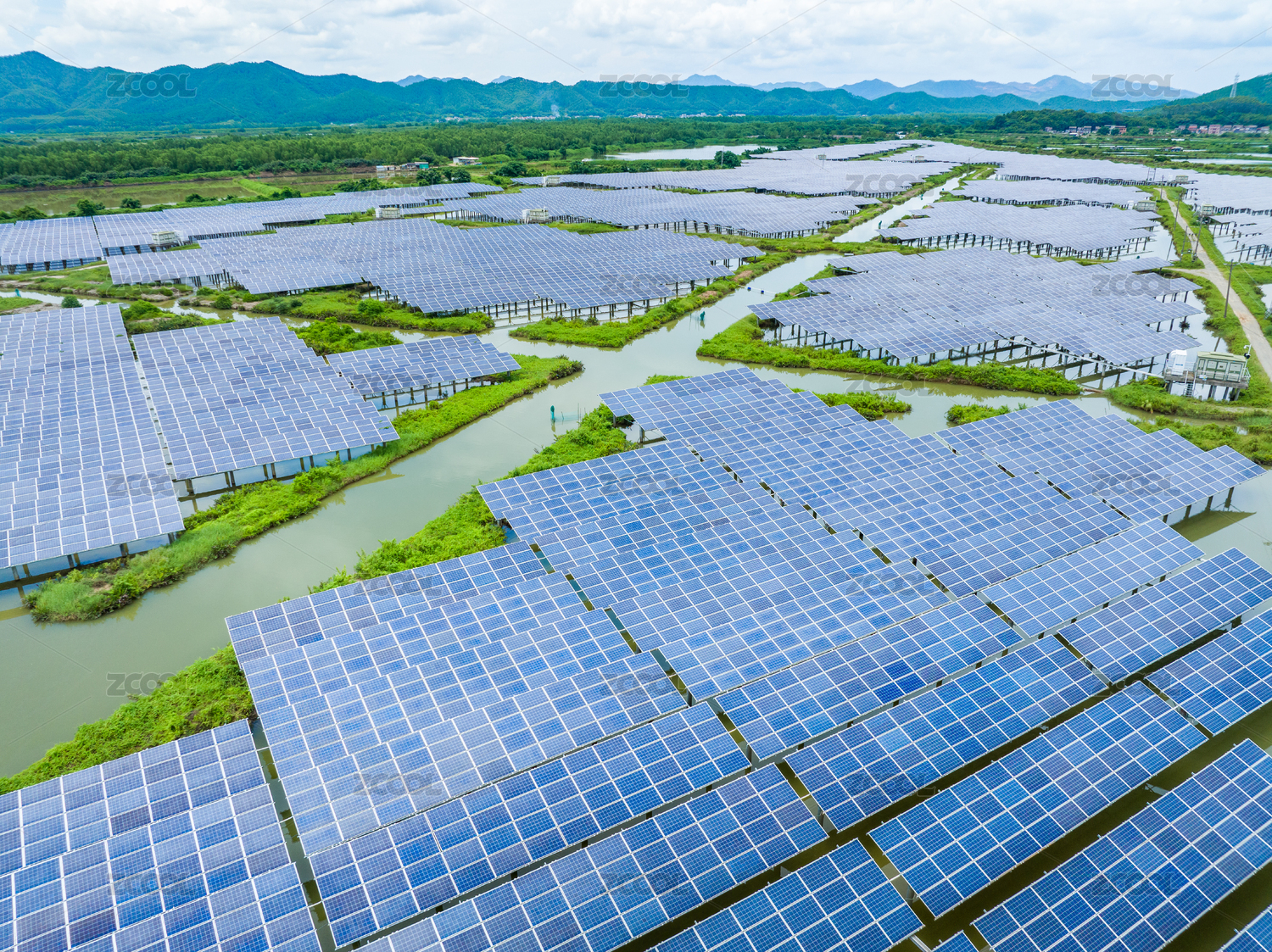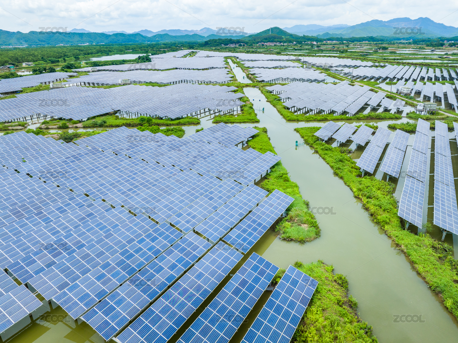 广东江门太阳能鱼塘光伏发电清洁能源碳中和