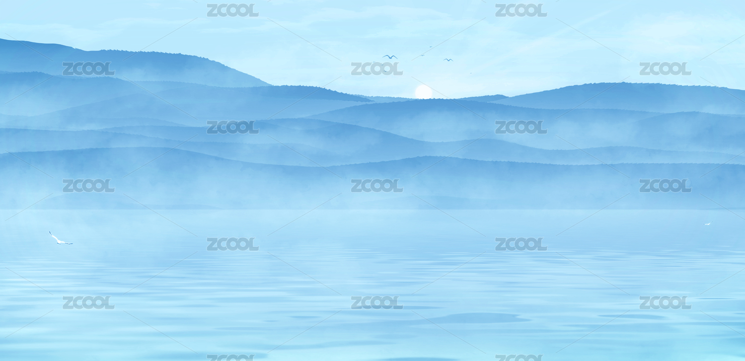 日出时候云雾弥漫着整片寂静寒冷的森林峡谷,中国风烟雨朦胧山水风插画背景