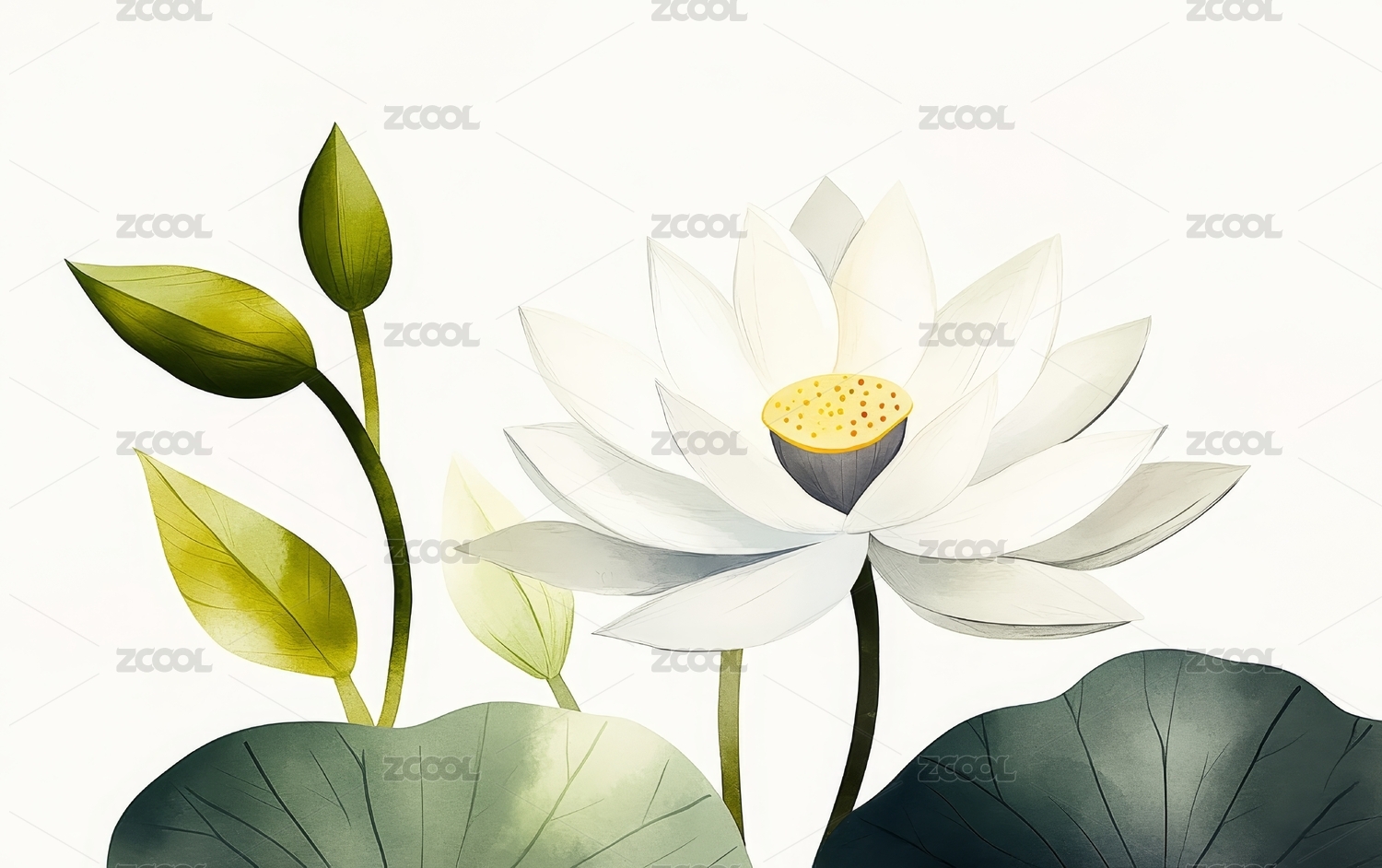 水彩风格盛开的荷花