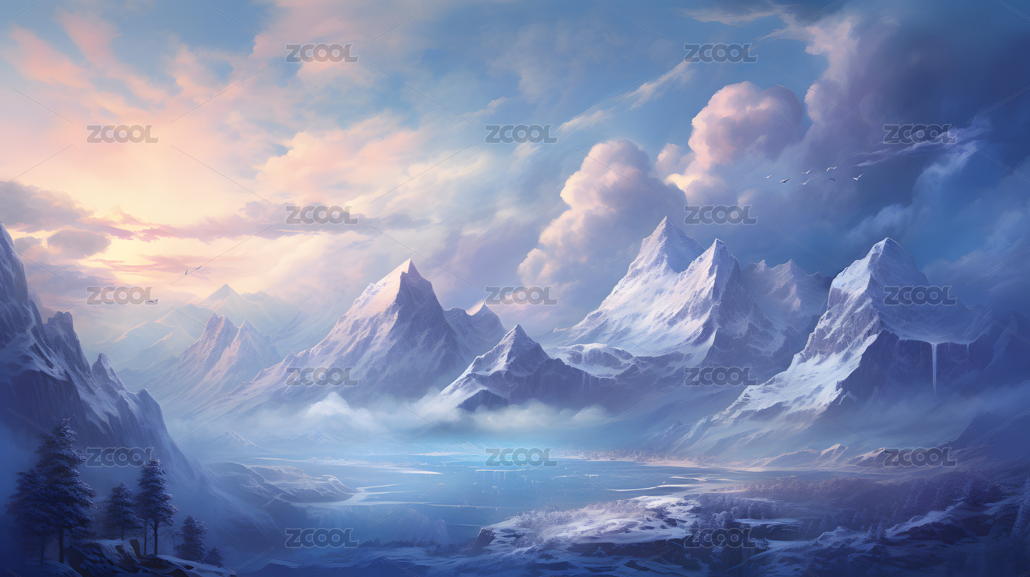 山脉,蓝色,宁静,艺术,冬季,雪,寒冷,岩石,山谷,梦幻