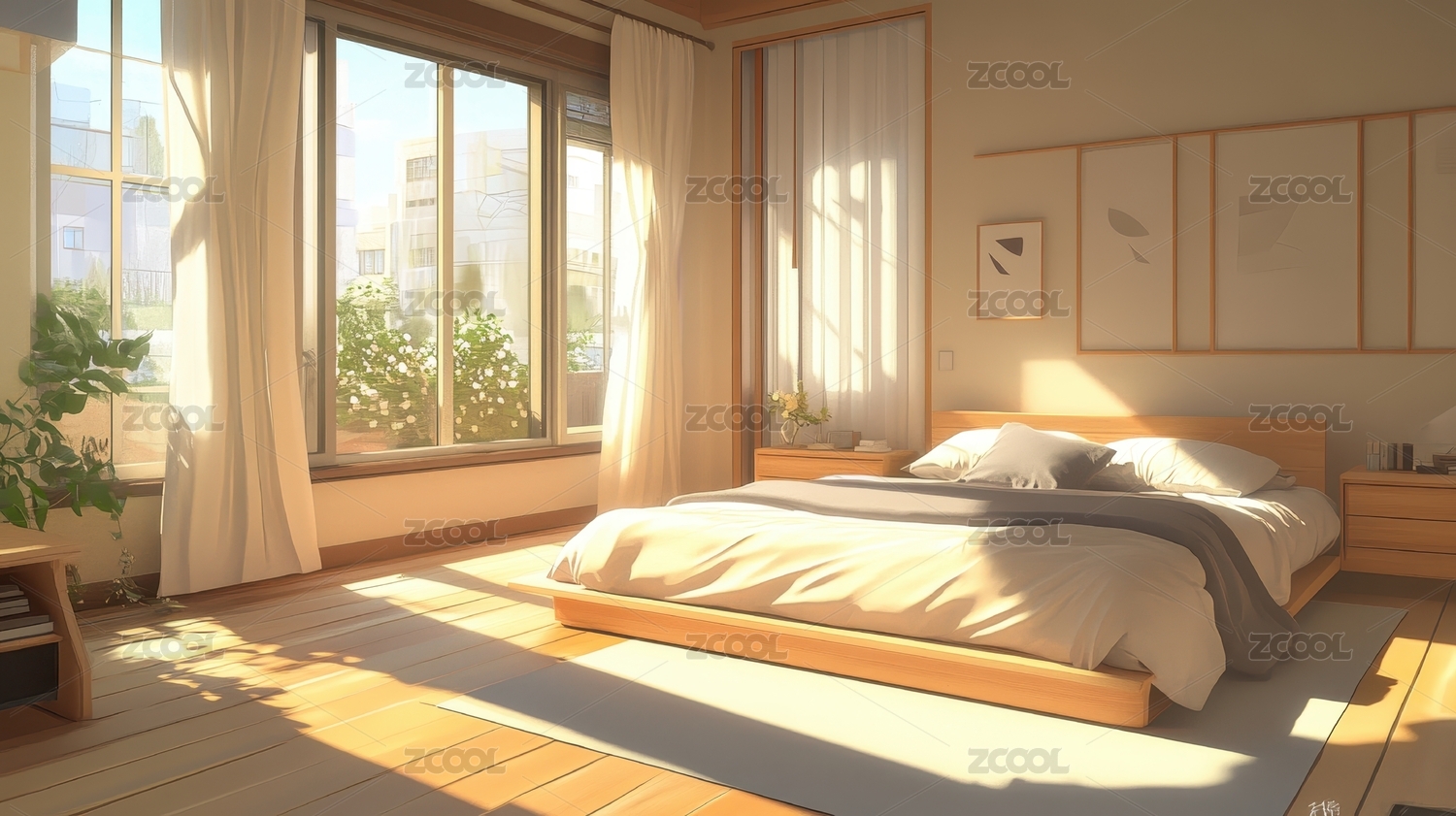 卧室,床,简约,自然,家居,设计,温馨,舒适,地毯,墙壁
