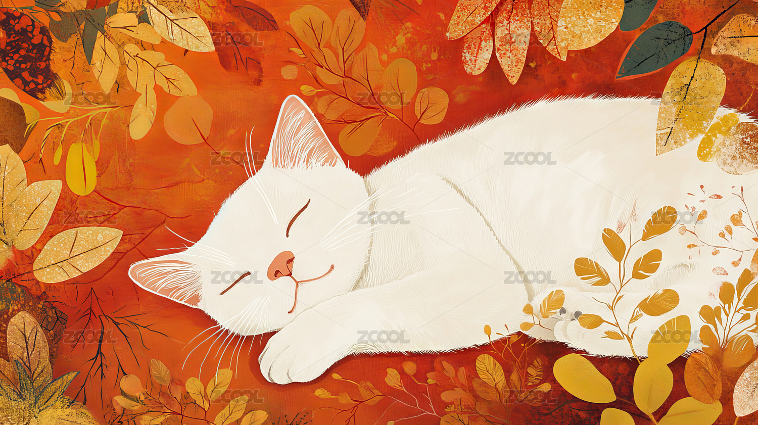 秋叶,秋天,卡通,可爱,温暖,毛茸茸,自然,阳光,治愈,插画