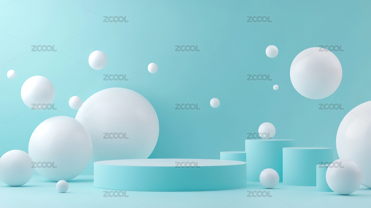 浅蓝色背景上的漂浮白色球体