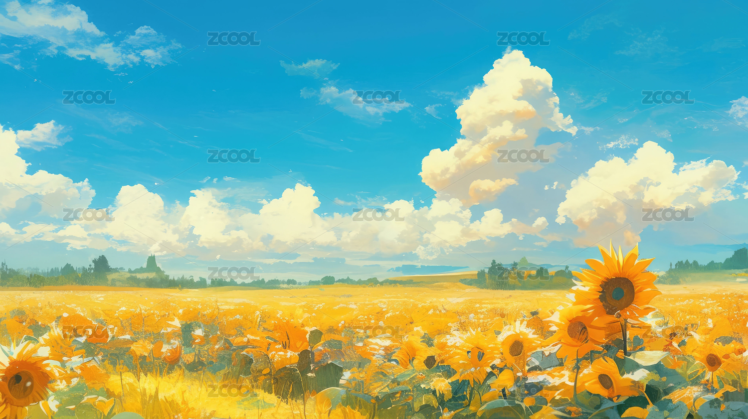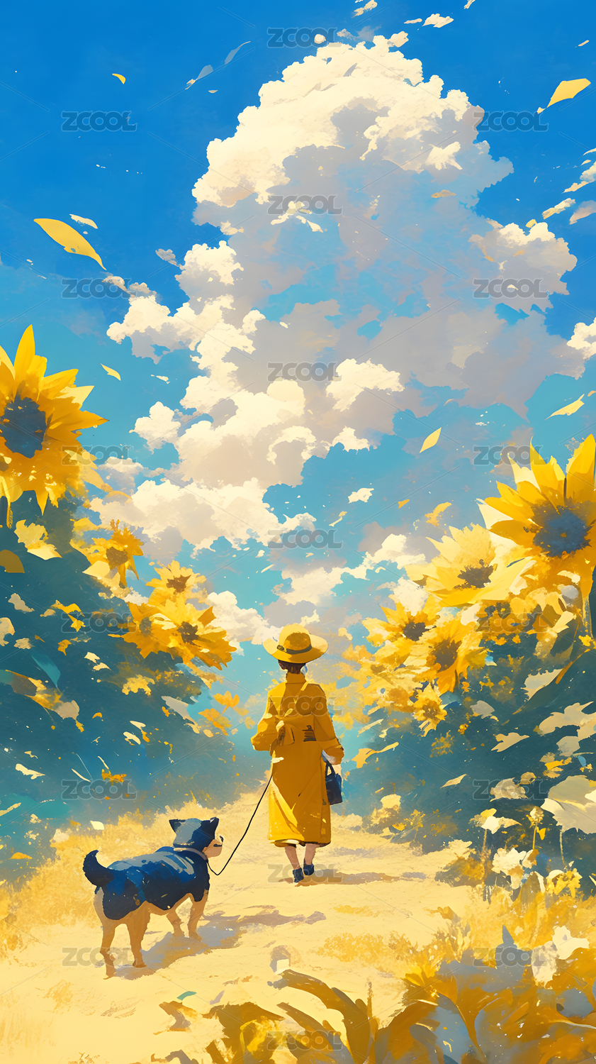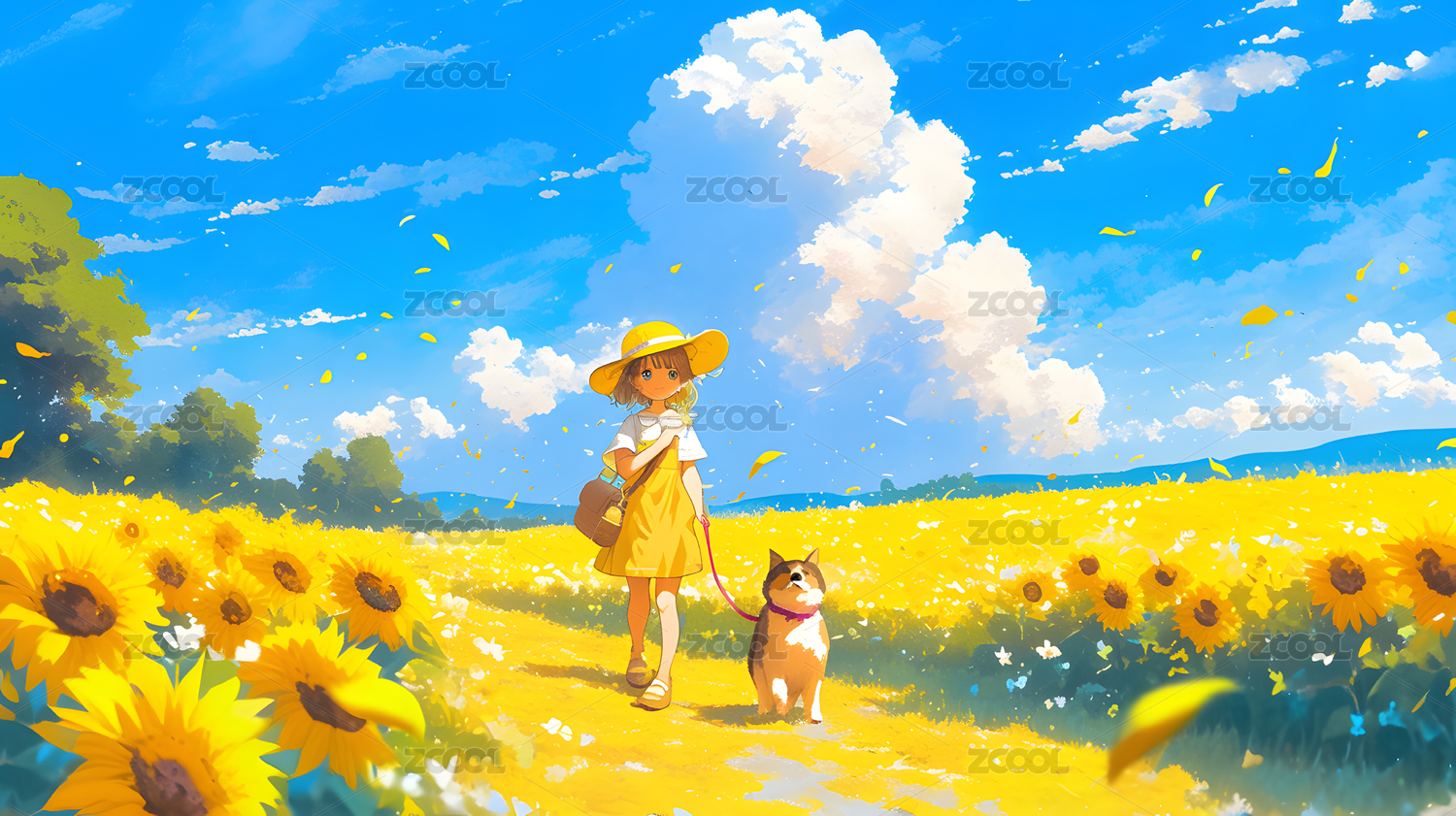 粉红花海黄昏风景彩色云和捕蝴蝶的小黑猫