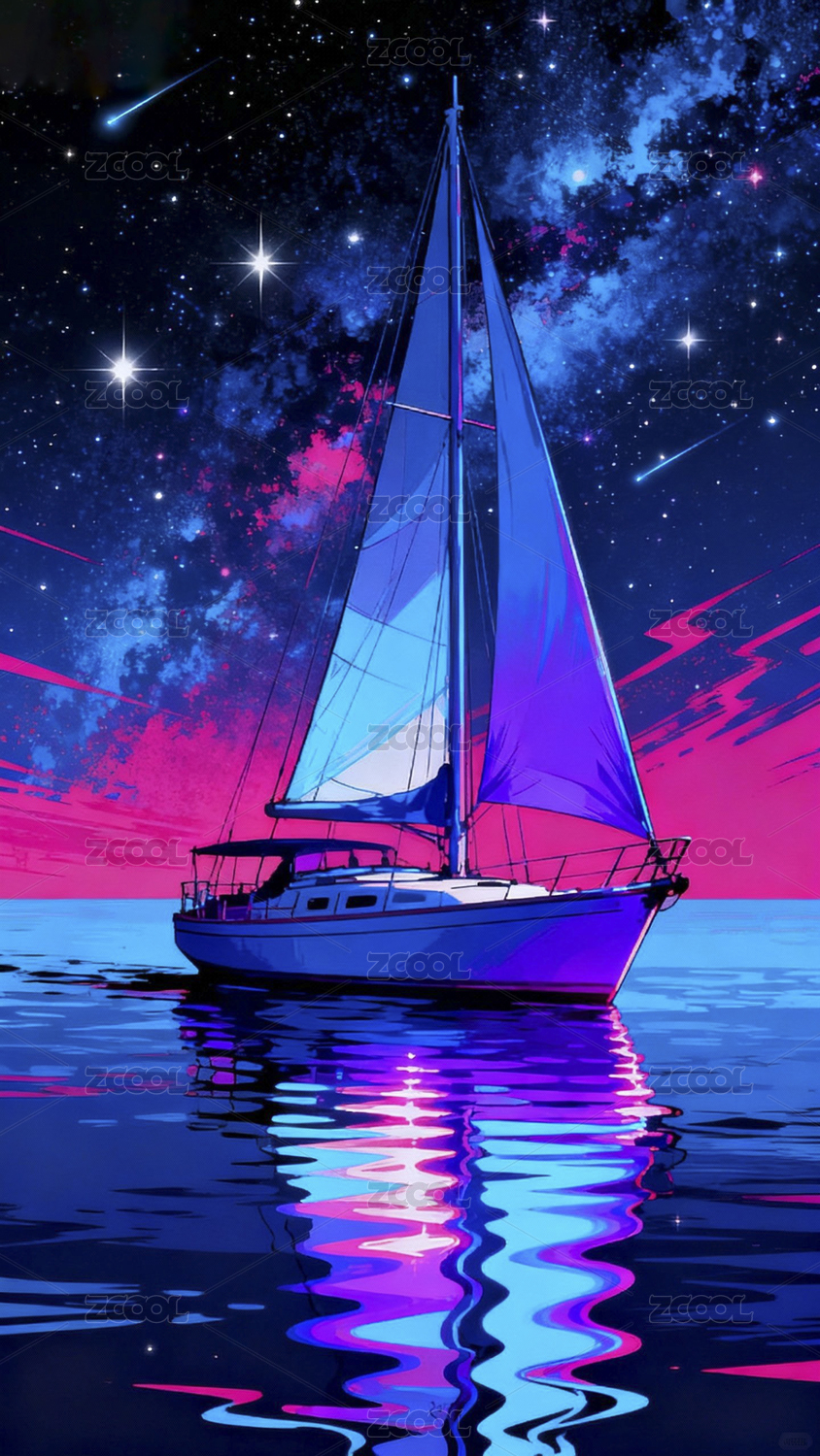 插画,月亮,爱的,夜晚,女人,星空,节日,花,云,荷花