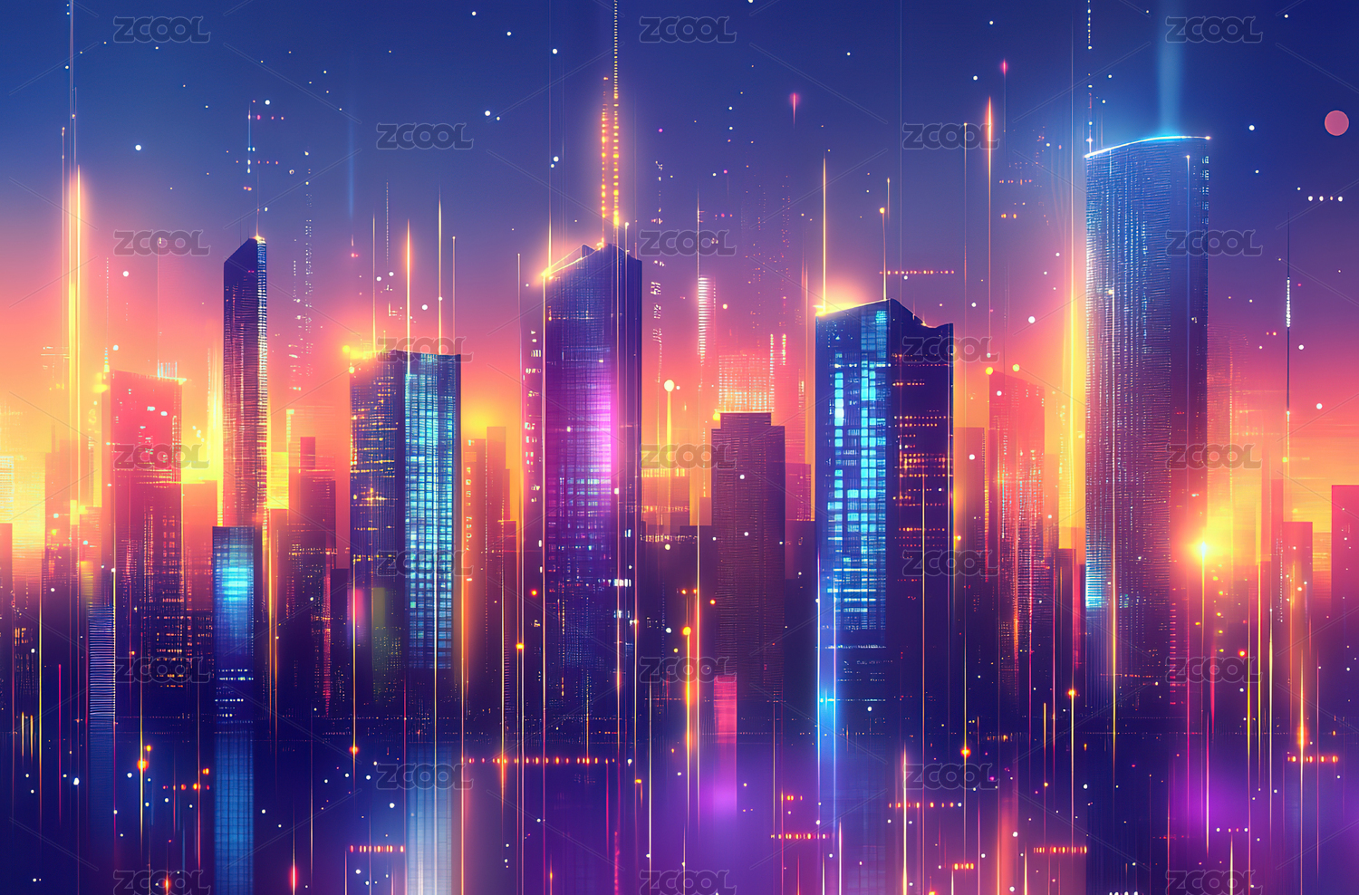霓虹闪烁的未来都市夜景