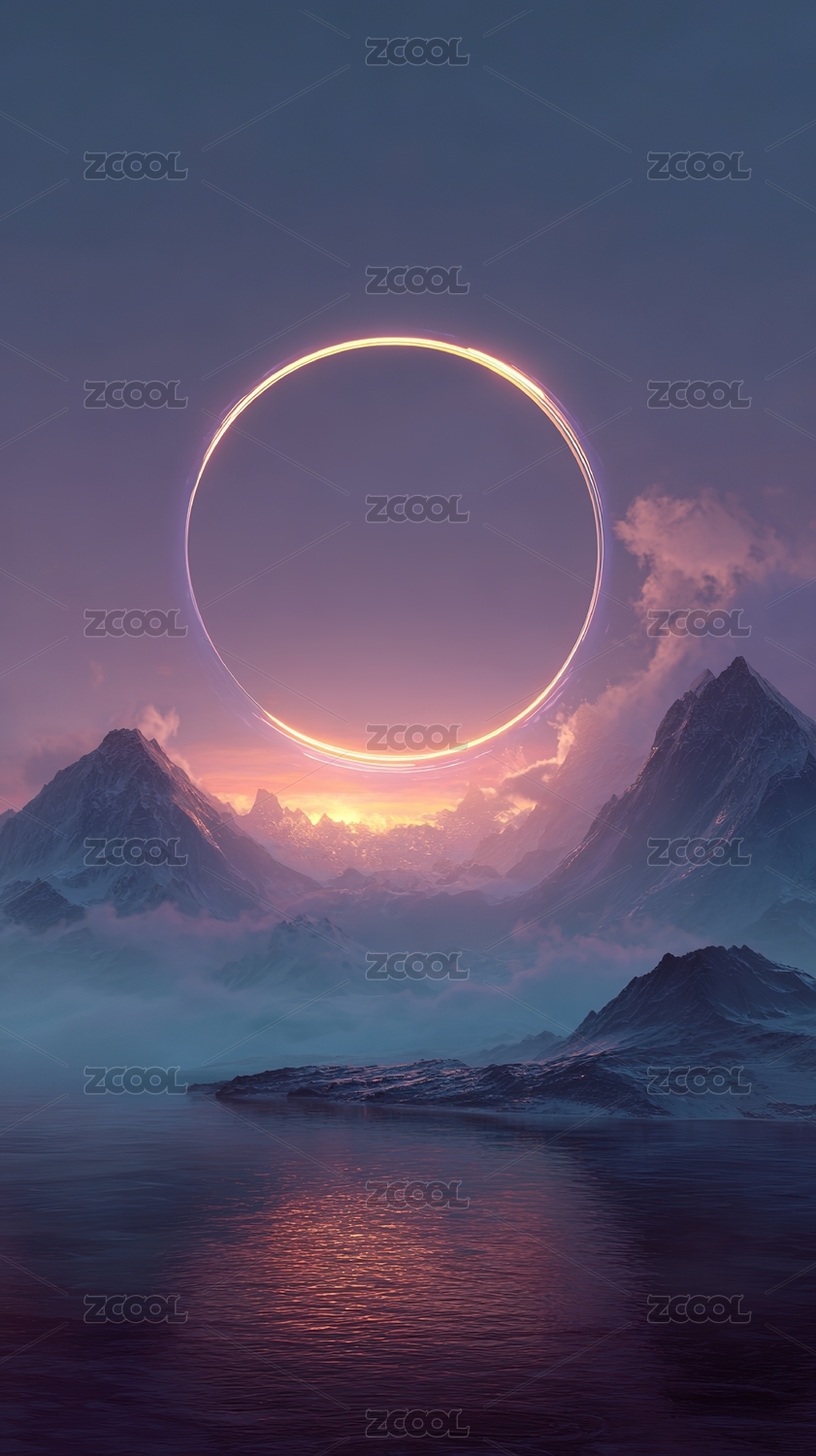 无人,自然,天空,AI数字艺术,三维图形,湖,云,商务,产品展台,圆形