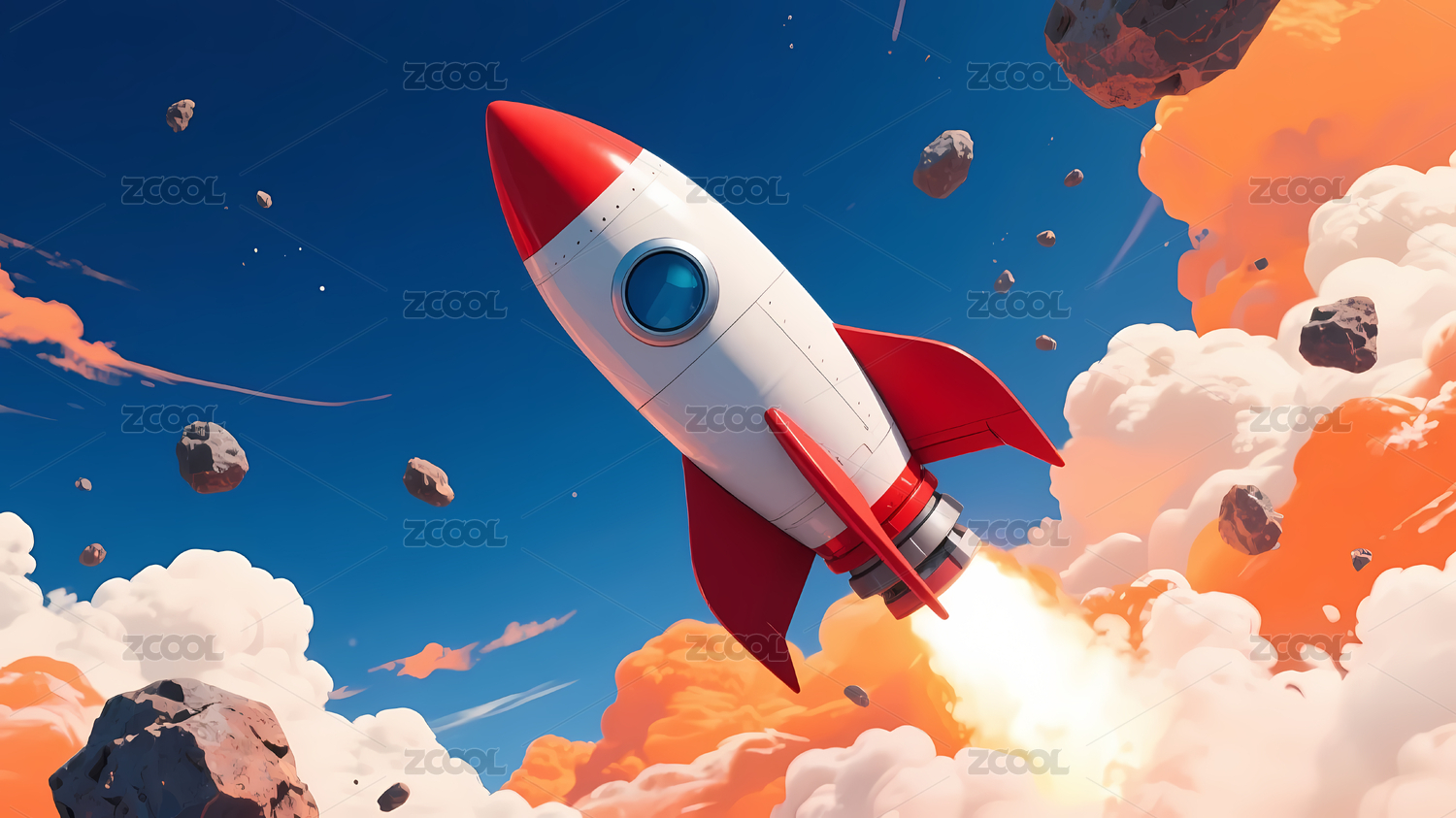 红色火箭穿梭太空