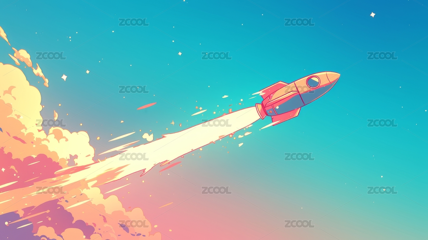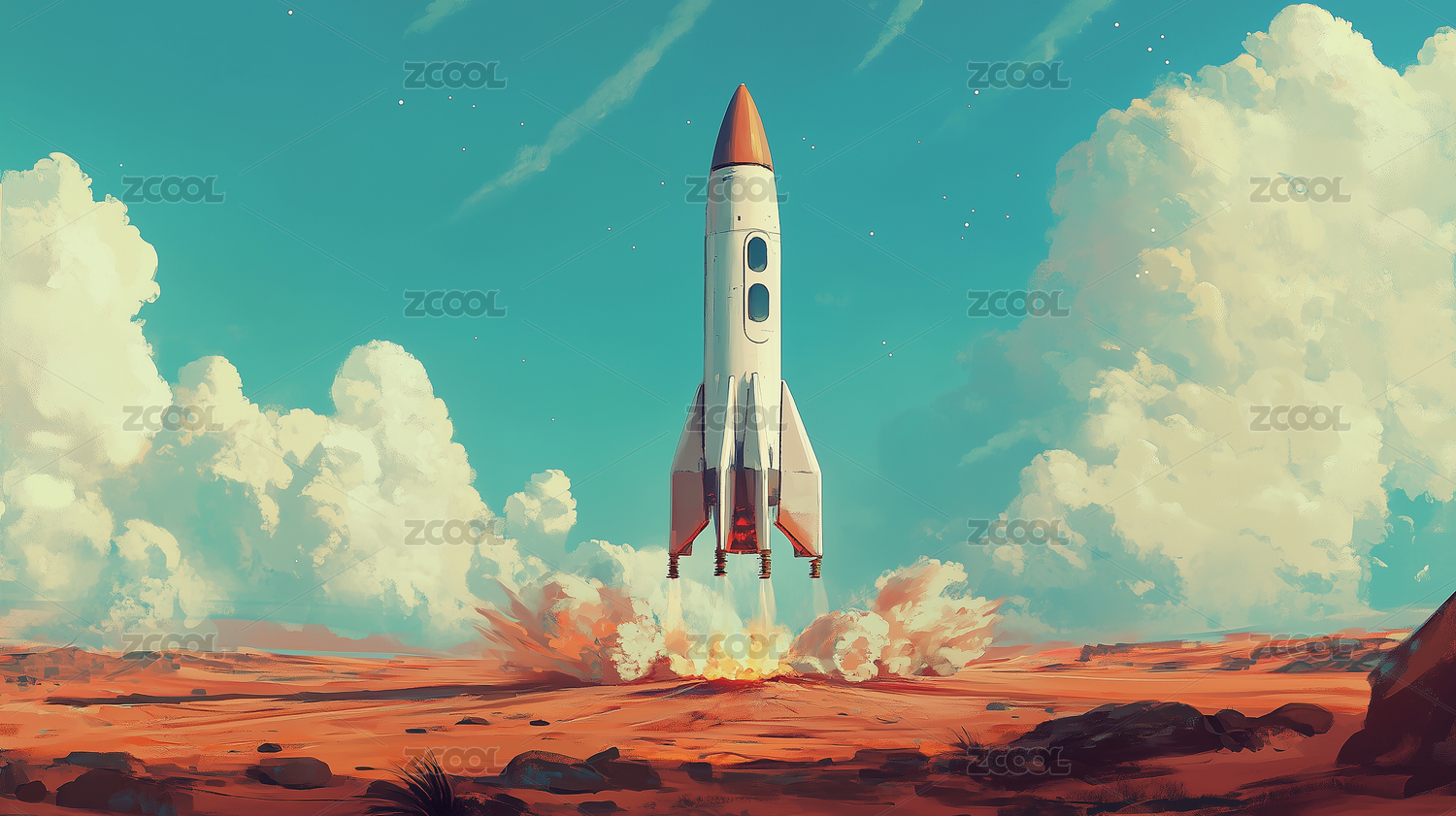 卡通发射的火箭插画