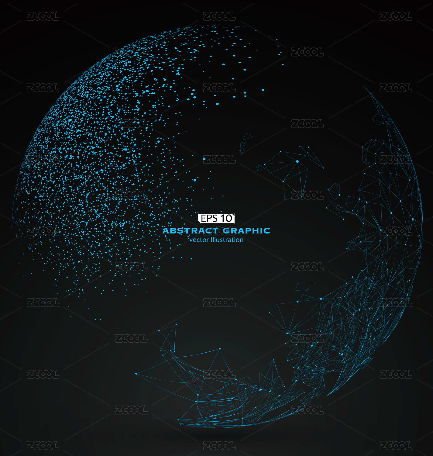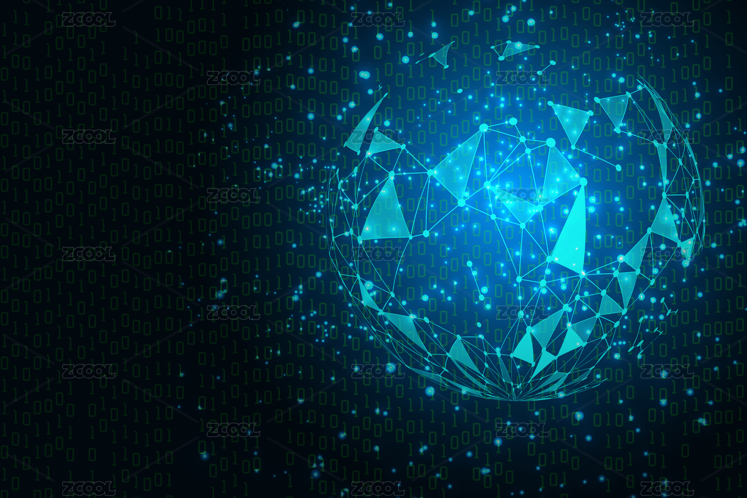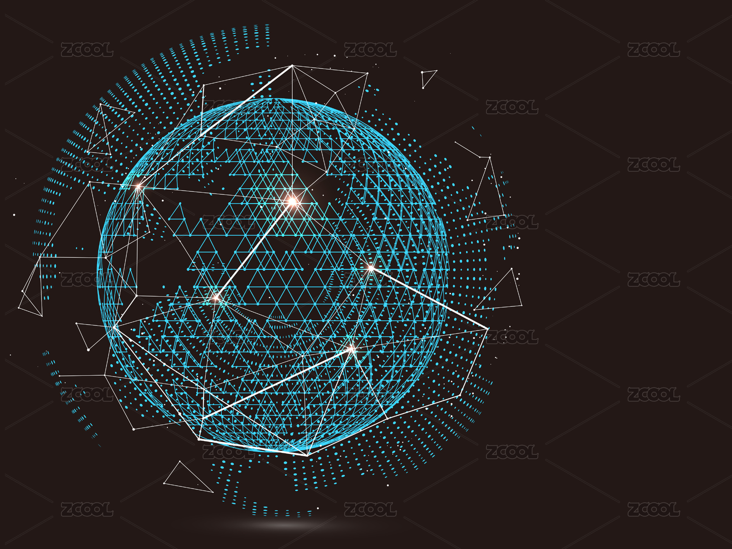点构造球面线框、世界地图、科学、技术科技意义,寓意全球化、国际化,球形世界地图